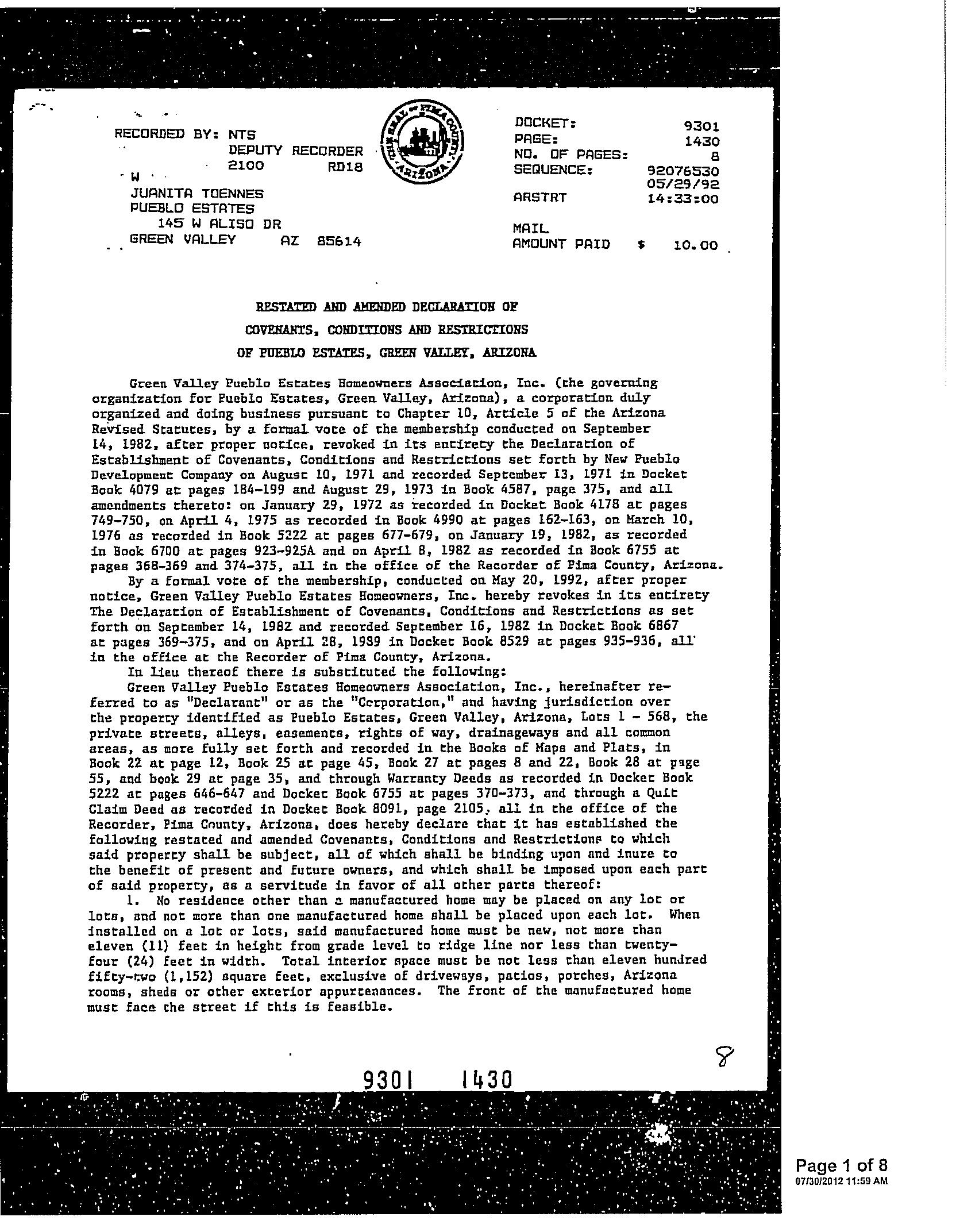 This report is not an insured product or service or a representation of the condition of title to real property. It is not an abst ract, legal opinion, opinion of title, title insurance commitment or preliminary report, or any form of Title Insurance or Guaranty. This report is issued exclusively for the benefit of the Applicant therefor and may not be used or relied upon by any other person. This report may not be reproduced in any manner without First American or Title Security's prior written consent. First American or Title Security does not represent or warrant that the information herein is complete or free from error, and the information herein is provided without any warranties of any kind, as-is, and with all faults. As a material part of the consideration given in exchange for the issuance of this report, recipient agrees that First American or Title Security's sole liability for any loss or damage caused by an error or omission due to inaccurate information or negligence in preparing this report shall be limited to the fee charged for the report. Recipient accepts this report with this limitation and agrees that First American or Title Security would not have issued this report but for the limitation of liability described above. First American or Title Security makes no representation or warranty as to the legality or propriety of recipient's use of the information herein.