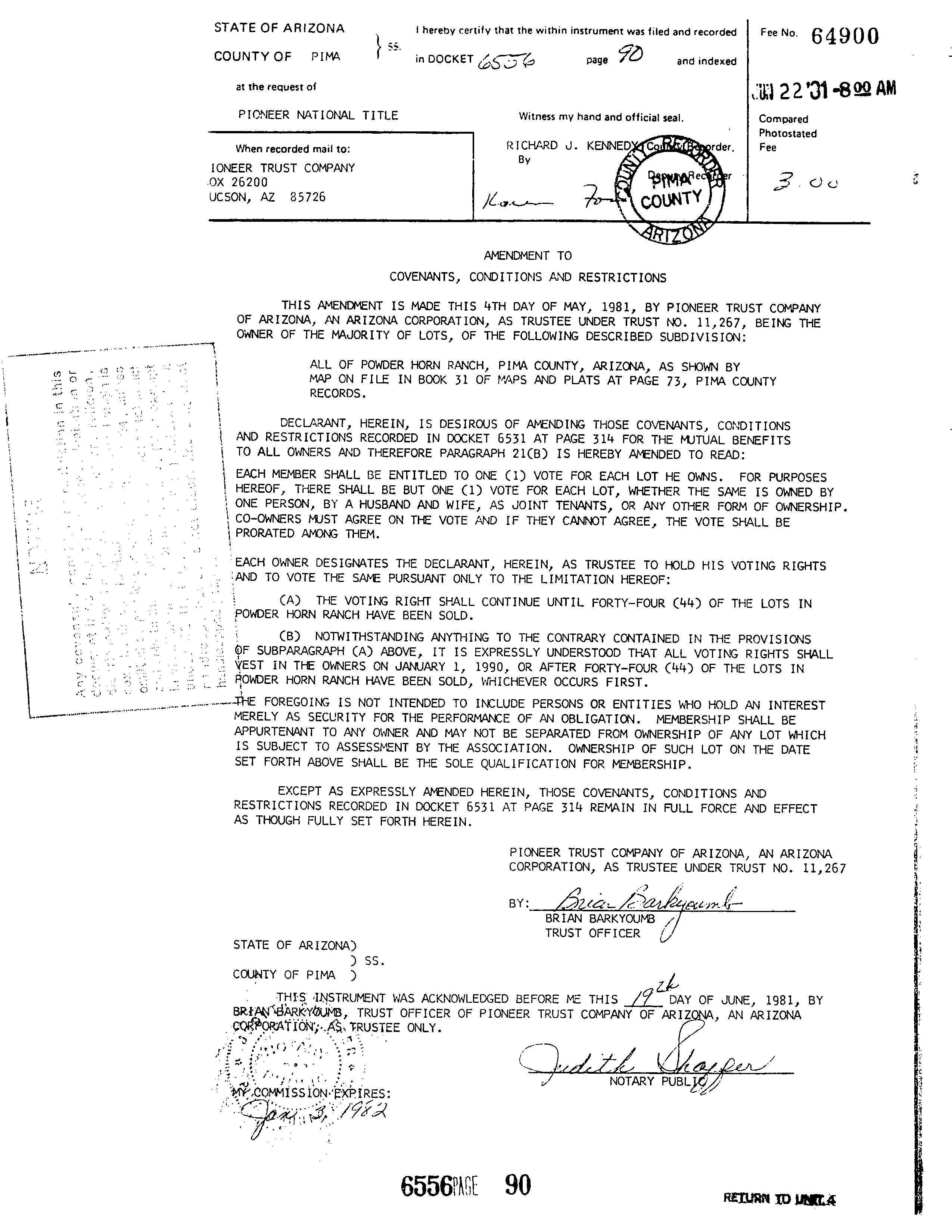 CONDITIONS & RESTRICTIONS PREPARED FOR : First American Title Insurance Company, and the operating divisions thereof, make no express or implied warranty respecting the information presented and assume no responsibility for errors or omissions. First American, the eagle logo, First American Title, and firstam.com are registered trademarks or trademarks of First American Financial Corporation and/or its affiliates. 2031 N Powder Horn Drive Tucson, AZ 85749