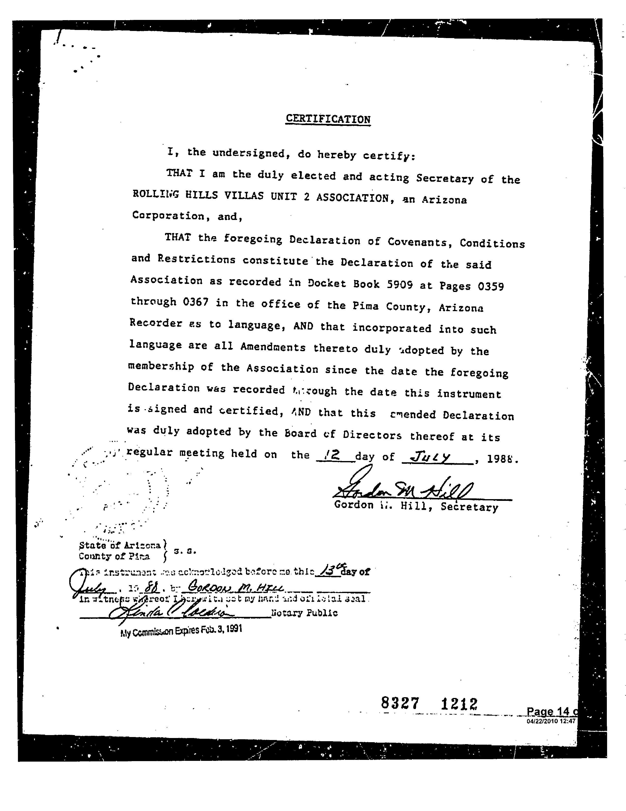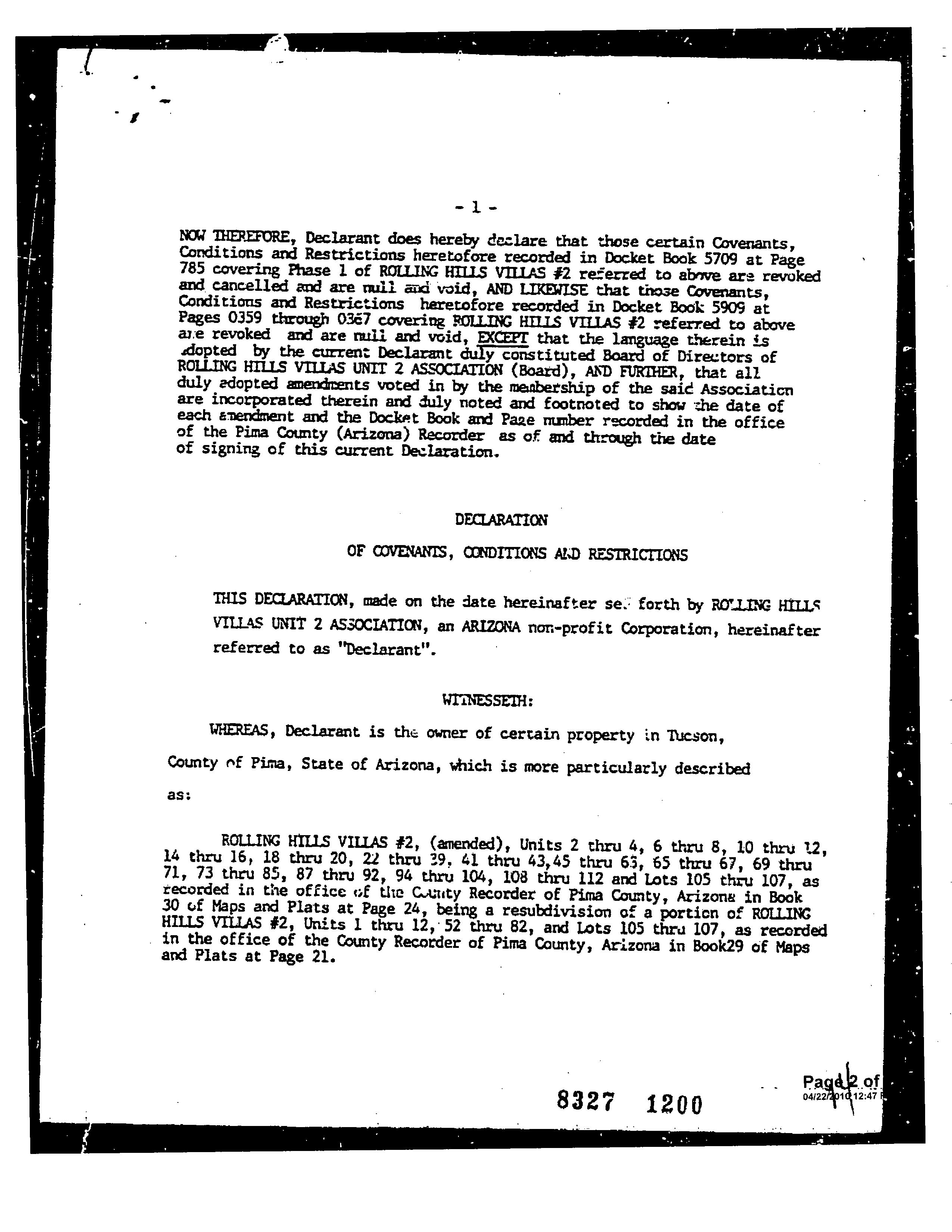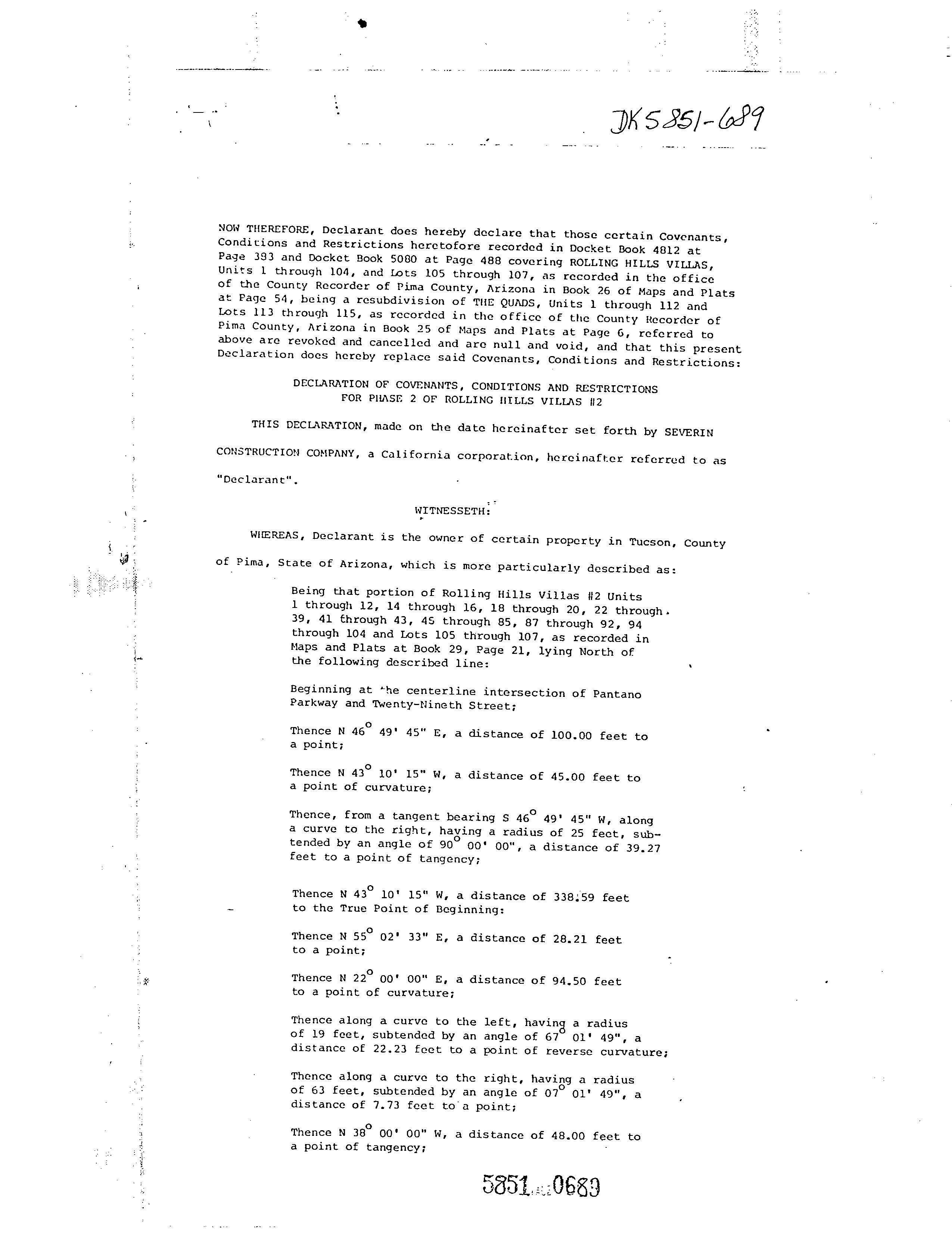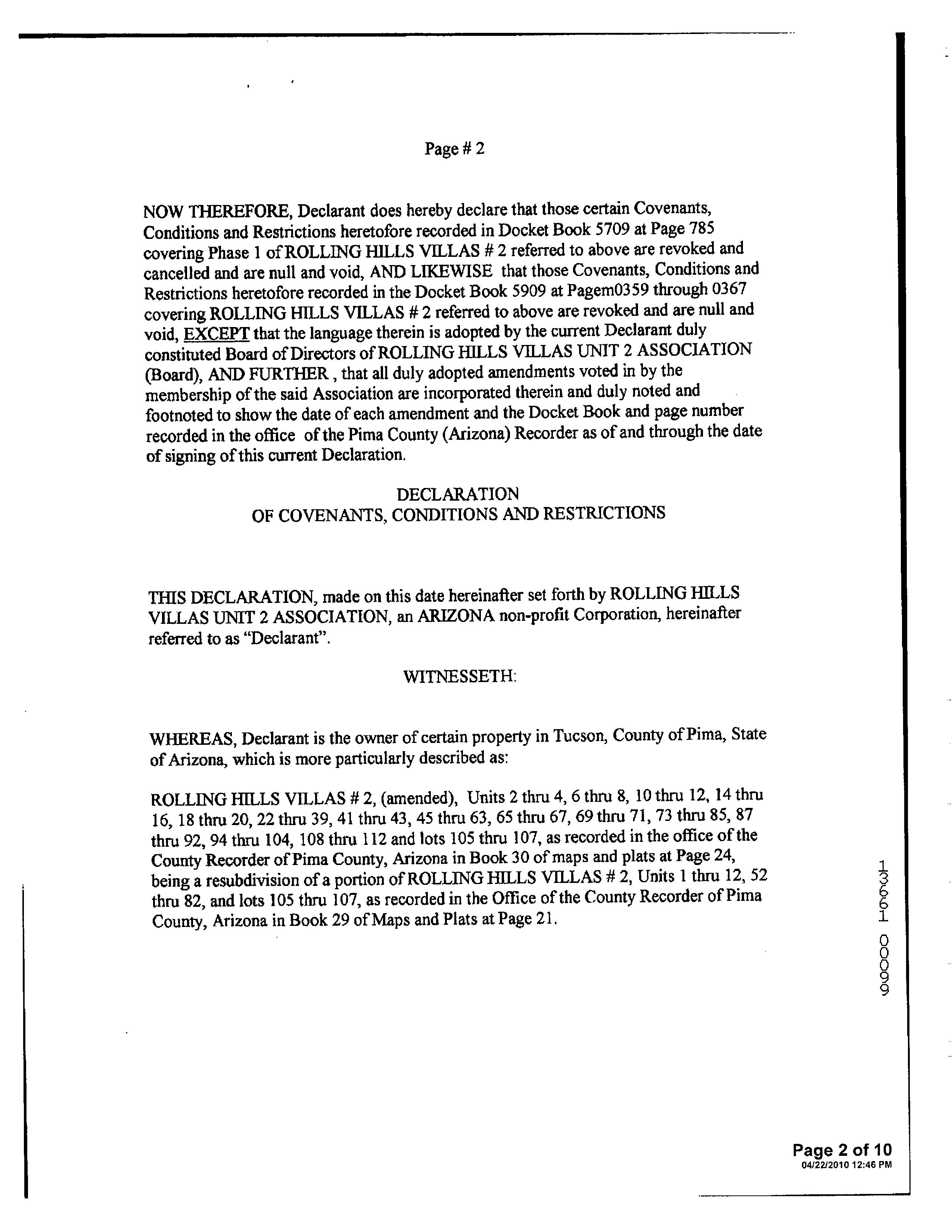 ©2021 First American Financial Corporation and/or its affiliates. All rights reserved. NYSE: FAF 05252610821 COVENANTS, CONDITIONS & RESTRICTIONS PREPARED FOR : First American Title Insurance Company, and the operating divisions thereof, make no express or implied warranty respecting the information presented and assume no responsibility for errors or omissions. First American, the eagle logo, First American Title, and firstam.com are registered trademarks or trademarks of First American Financial Corporation and/or its affiliates. 2052 S. Doral Dr. Tucson, AZ