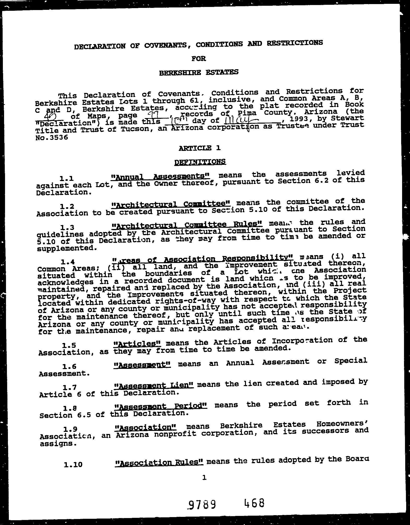 ©2021 First American Financial Corporation and/or its affiliates. All rights reserved. NYSE: FAF 05252610821 COVENANTS, CONDITIONS & RESTRICTIONS PREPARED FOR : First American Title Insurance Company, and the operating divisions thereof, make no express or implied warranty respecting the information presented and assume no responsibility for errors or omissions. First American, the eagle logo, First American Title, and firstam.com are registered trademarks or trademarks of First American Financial Corporation and/or its affiliates. 3649 W. Capella Street Tucson, AZ 85741