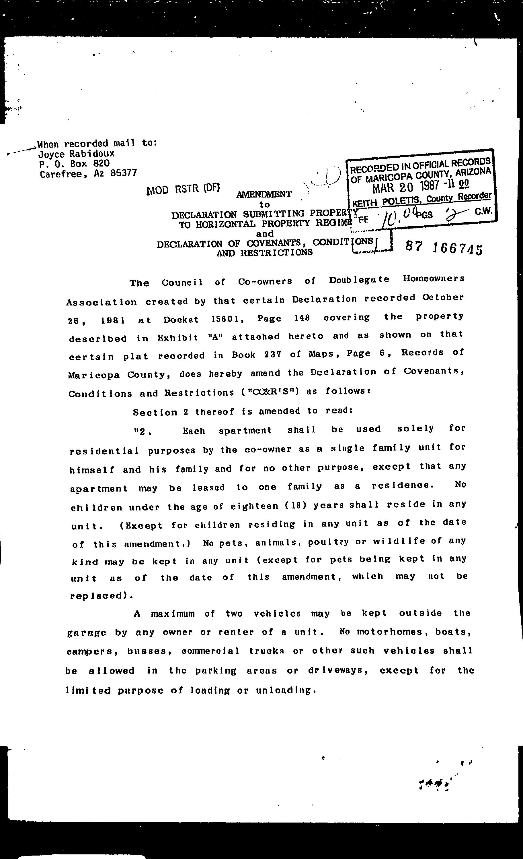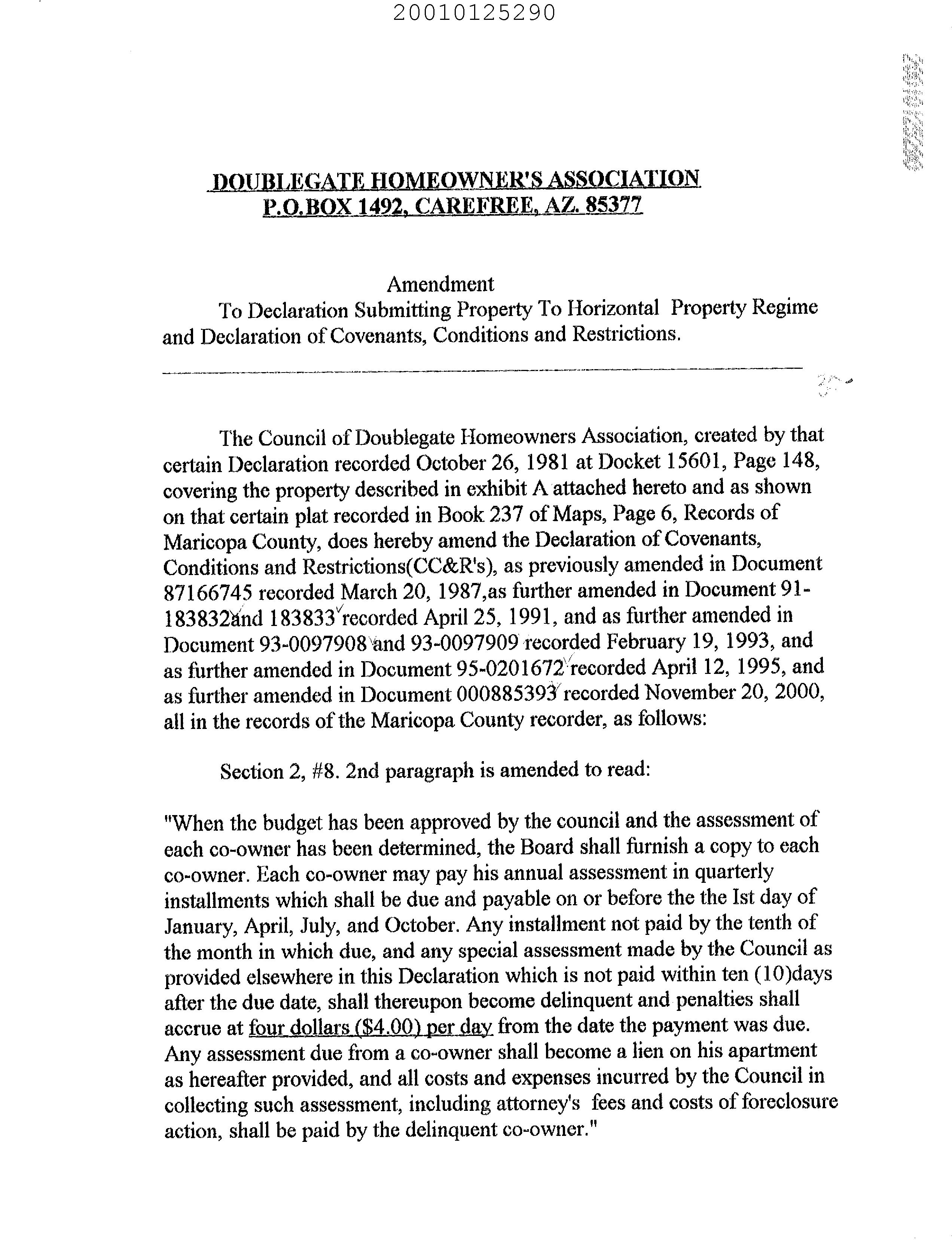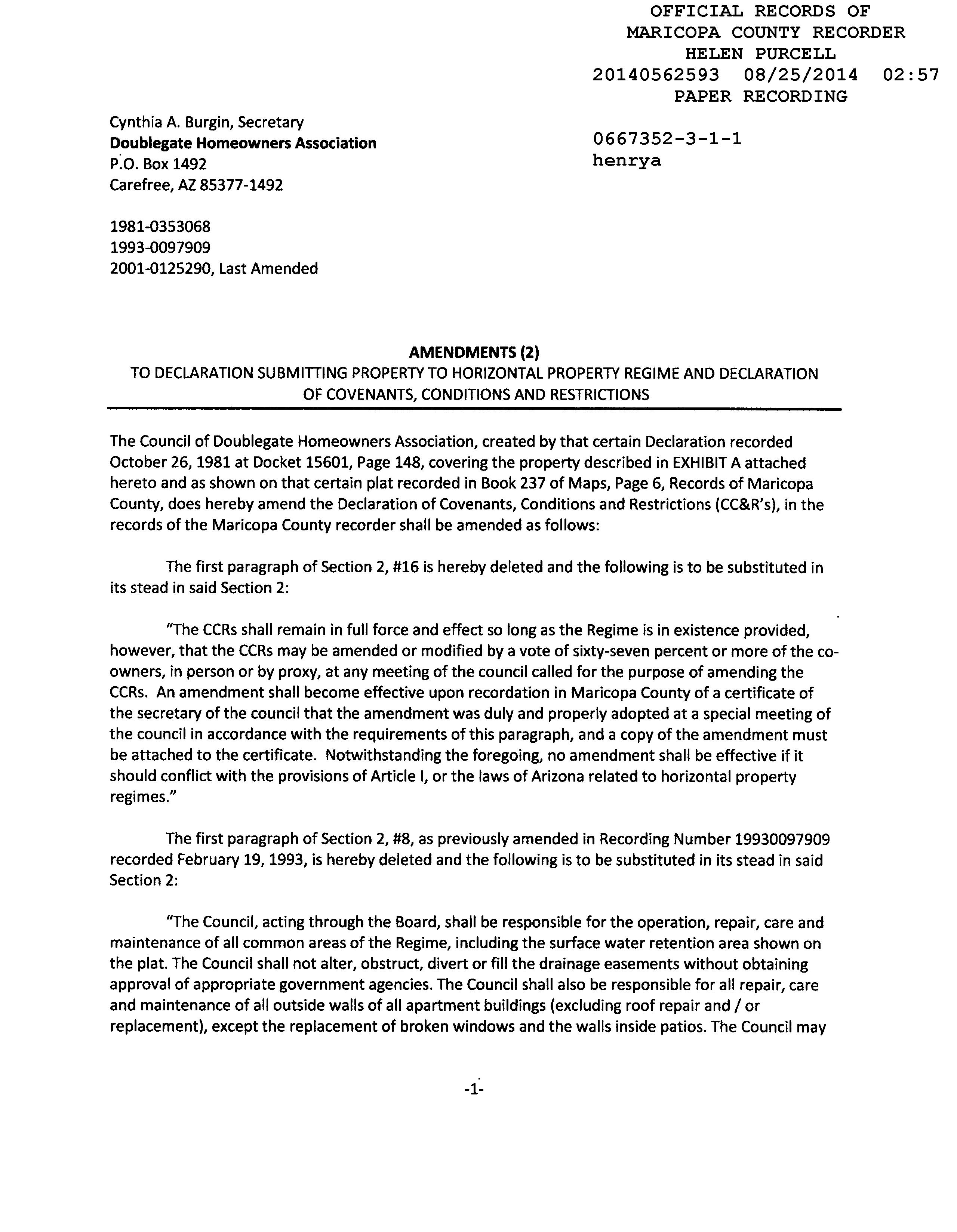 ©2021 First American Financial Corporation and/or its affiliates. All rights reserved. NYSE: FAF 05252610821 COVENANTS, CONDITIONS & RESTRICTIONS PREPARED FOR : First American Title Insurance Company, and the operating divisions thereof, make no express or implied warranty respecting the information presented and assume no responsibility for errors or omissions. First American, the eagle logo, First American Title, and firstam.com are registered trademarks or trademarks of First American Financial Corporation and/or its affiliates. 37206 N Tom Darlington Dr. Unit 1 Carefree AZ 85377