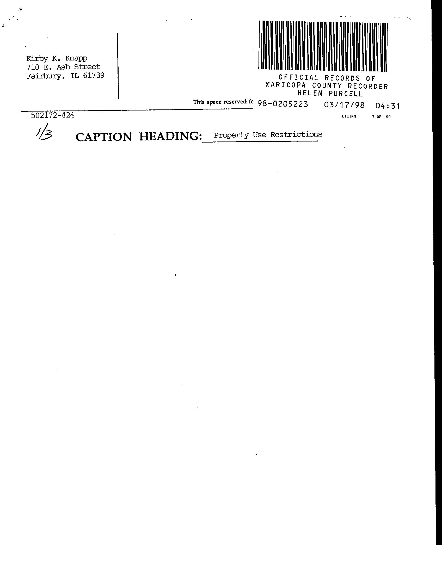 ©2021 First American Financial Corporation and/or its affiliates. All rights reserved. NYSE: FAF 05252610821 COVENANTS, CONDITIONS & RESTRICTIONS PREPARED FOR : First American Title Insurance Company, and the operating divisions thereof, make no express or implied warranty respecting the information presented and assume no responsibility for errors or omissions. First American, the eagle logo, First American Title, and firstam.com are registered trademarks or trademarks of First American Financial Corporation and/or its affiliates. 38732 N. 10th St. Phoenix, AZ 85086