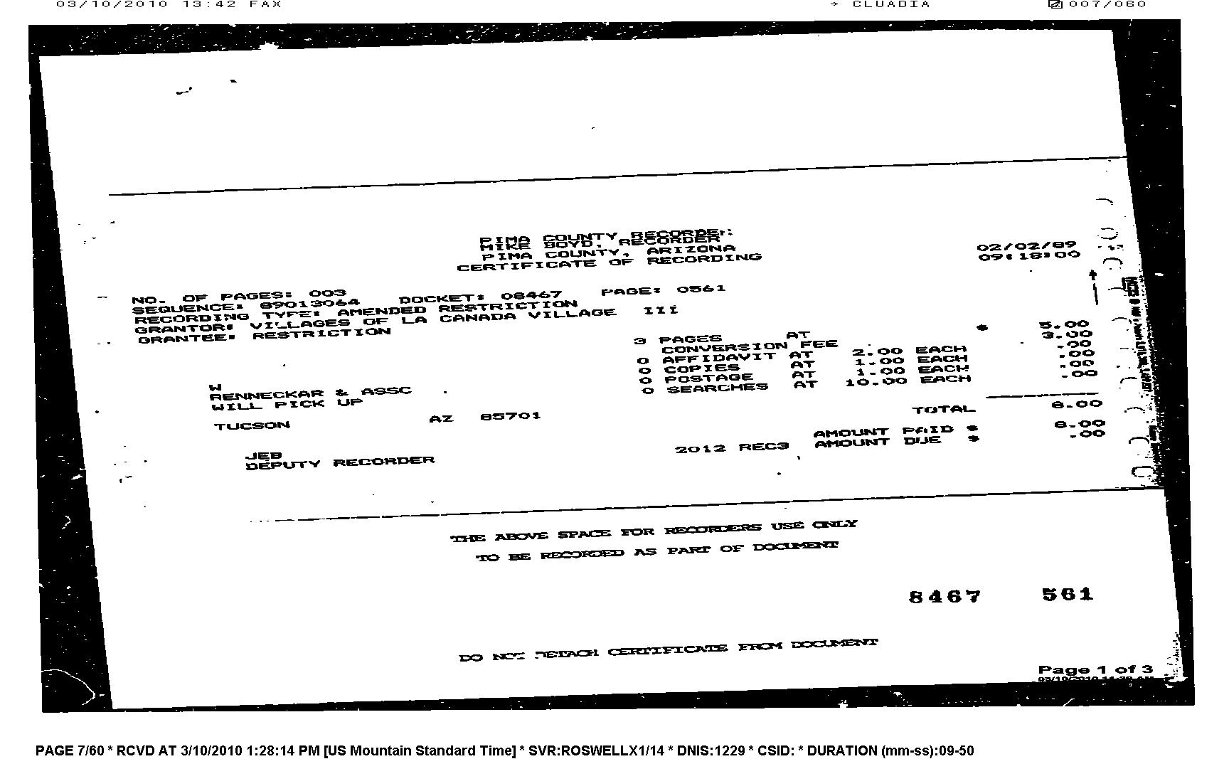 ©2021 First American Financial Corporation and/or its affiliates. All rights reserved. NYSE: FAF 05252610821 COVENANTS, CONDITIONS & RESTRICTIONS PREPARED FOR : First American Title Insurance Company, and the operating divisions thereof, make no express or implied warranty respecting the information presented and assume no responsibility for errors or omissions. First American, the eagle logo, First American Title, and firstam.com are registered trademarks or trademarks of First American Financial Corporation and/or its affiliates. 757 W Annandale Way Tucson, AZ 85737