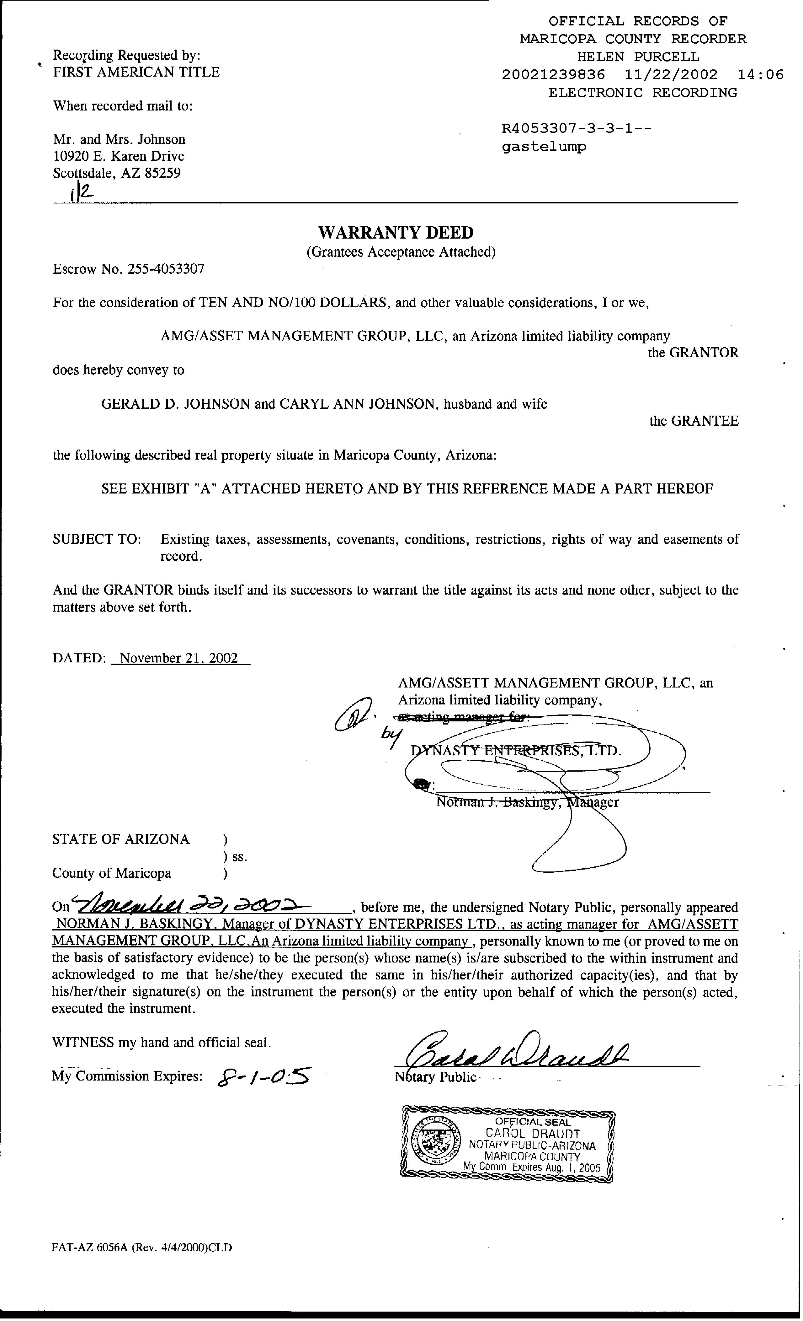 Recording/Sale Date : 11/22/2002 / 11/21/2002