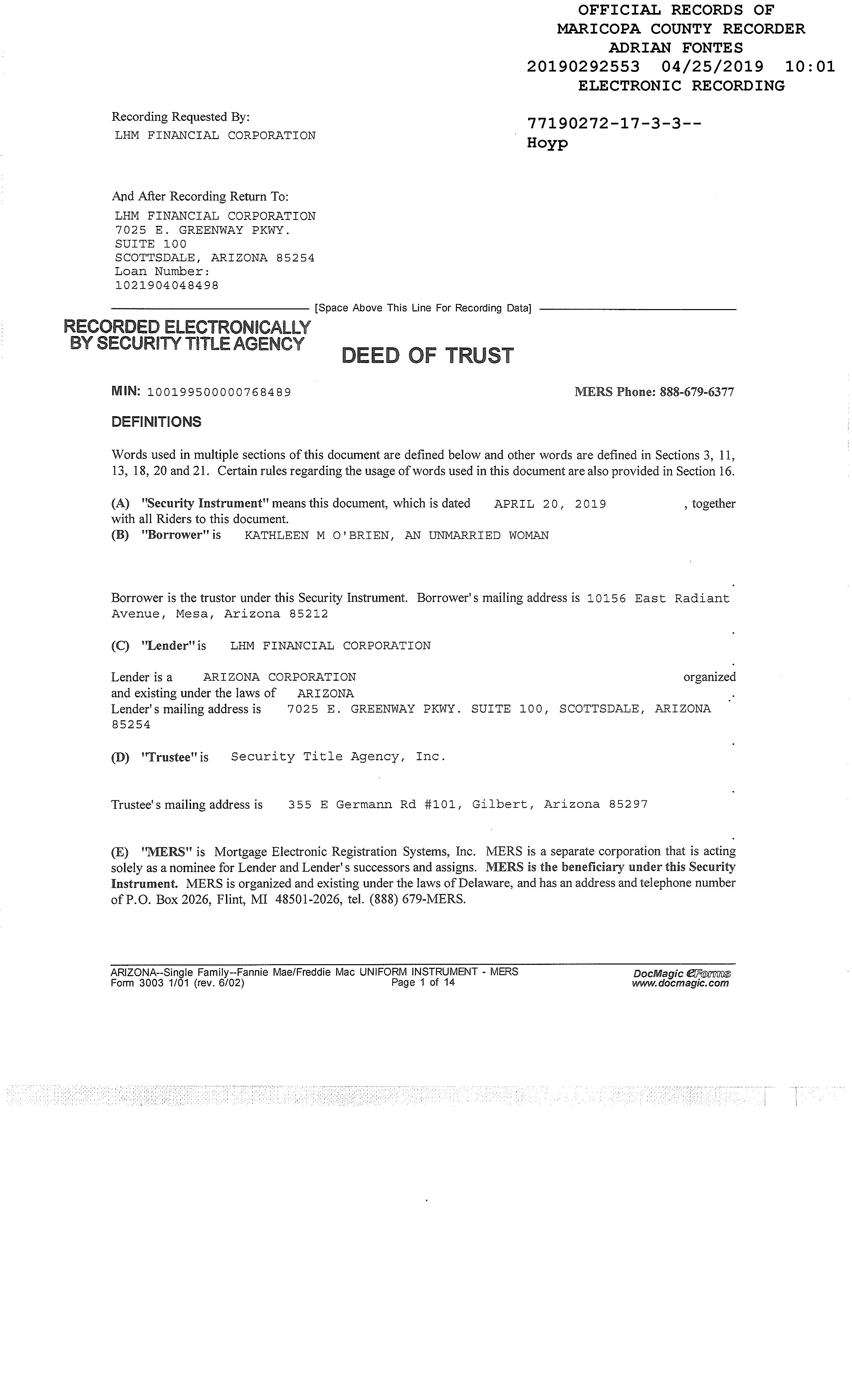 Recording/Sale Date : 04/25/2019 / 04/14/2019