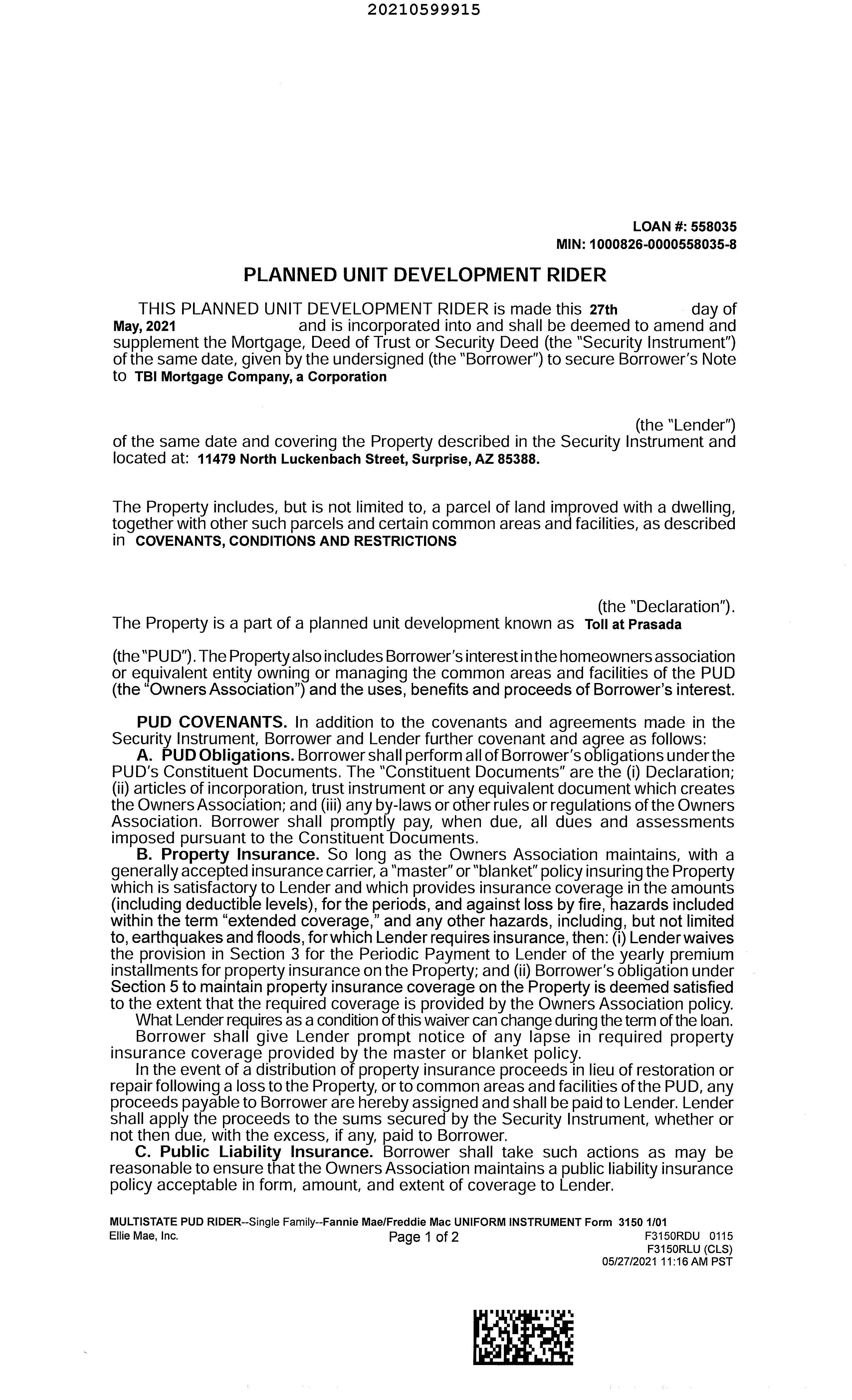 Mailing Address : 11479 N Luckenbach St, Surprise AZ 85388-3026 R110