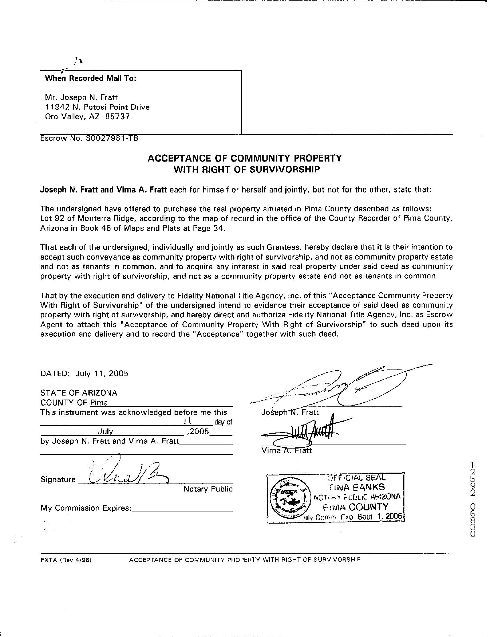 Owner Name : Fratt Joseph N / Fratt Virna A