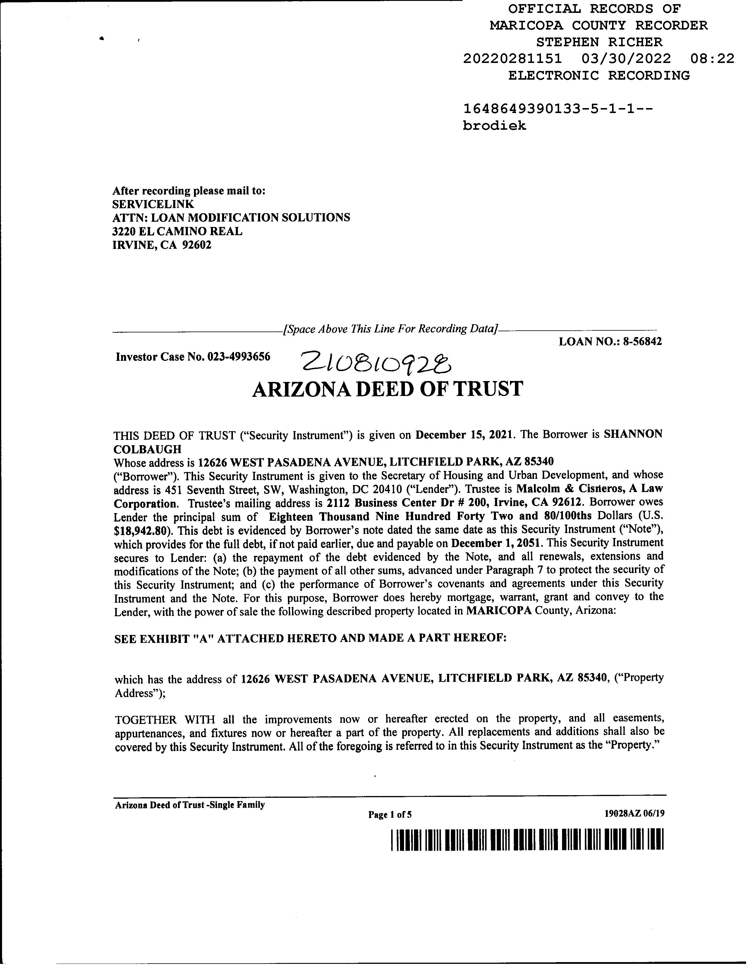 Subject Property : 12626 W Pasadena Ave Litchfield Park AZ 85340