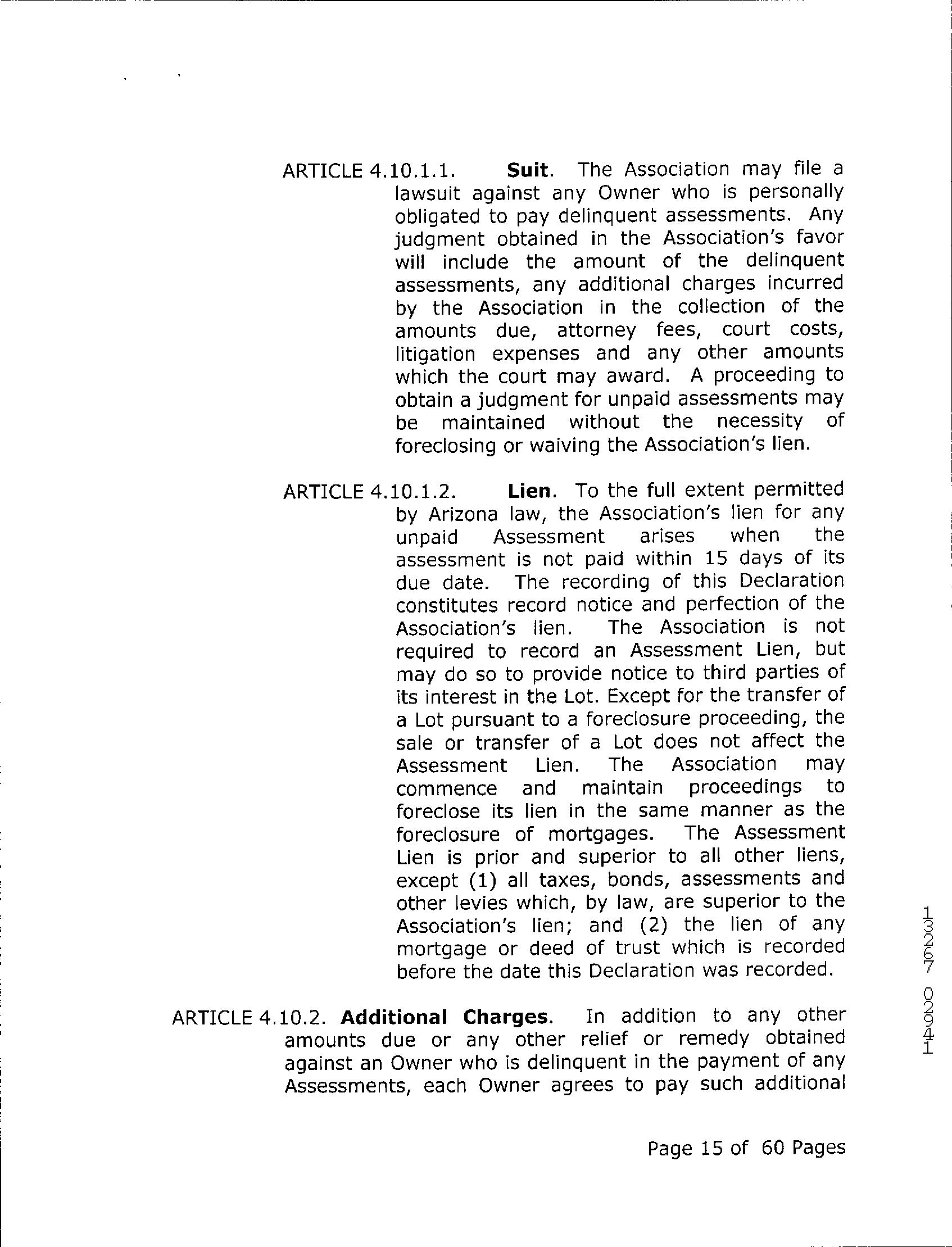 11 Unrecorded lien by a homeowners association
