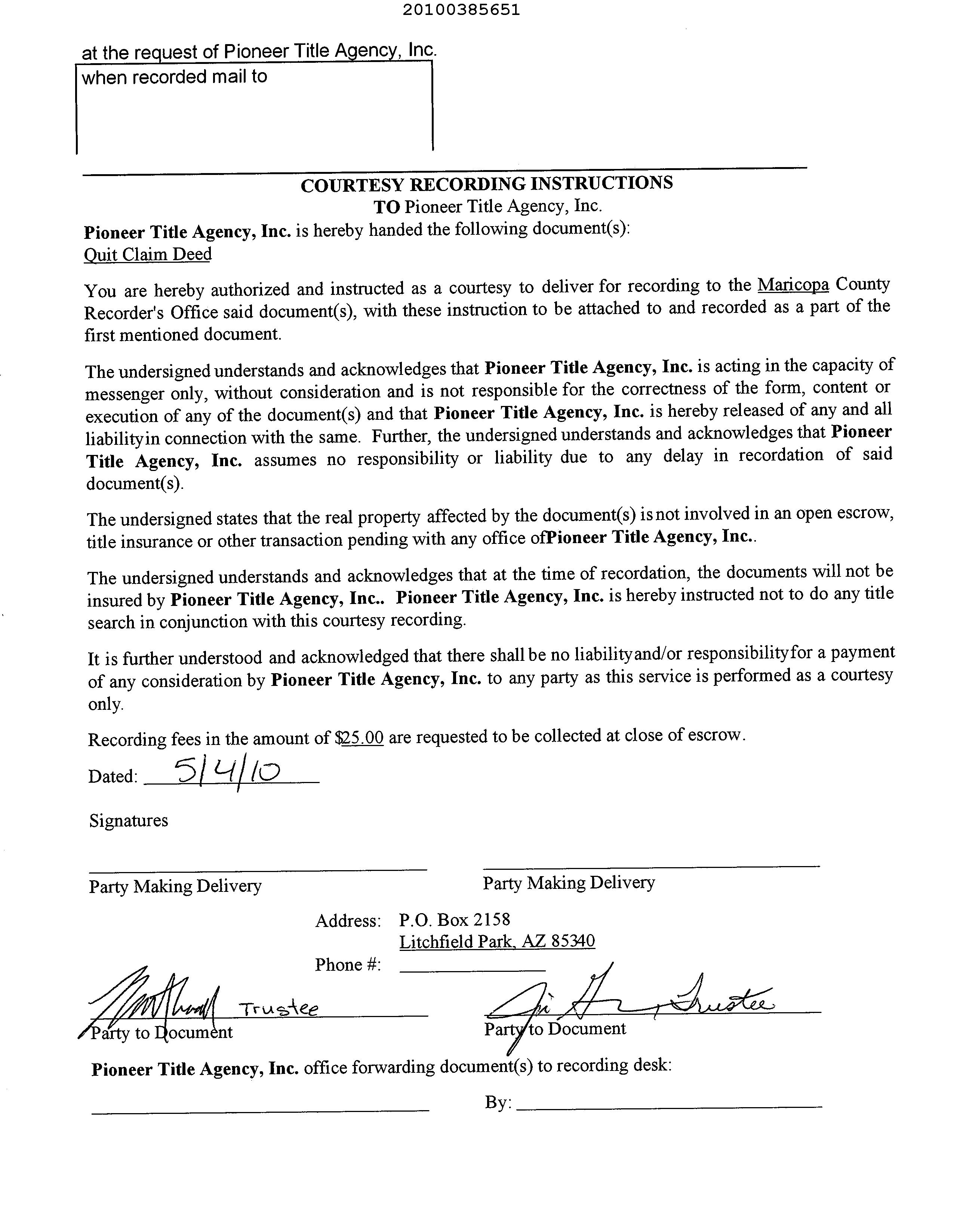 Title Company : Pioneer Title Agency