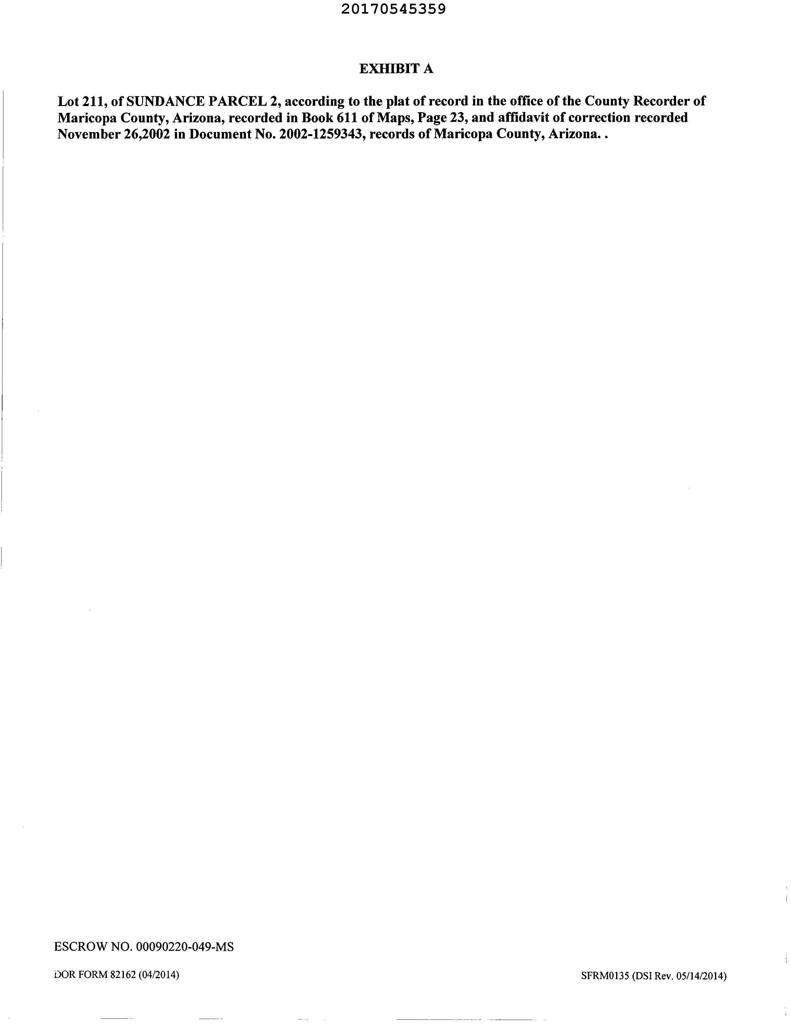 County : Maricopa, Az Subdivision : Sundance Prcl 2