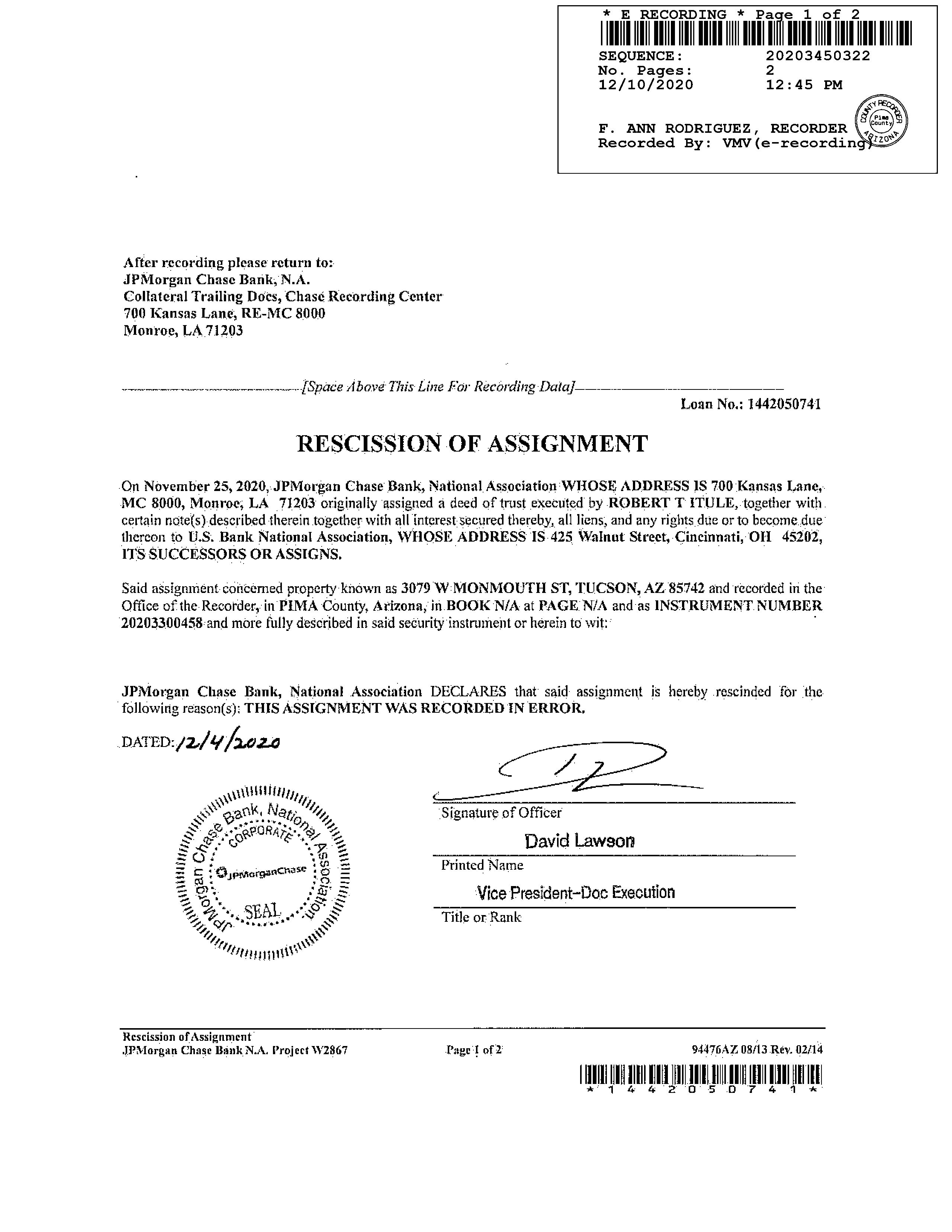 Mailing Address : 3079 W Monmouth St, Tucson AZ 85742-9364 R079