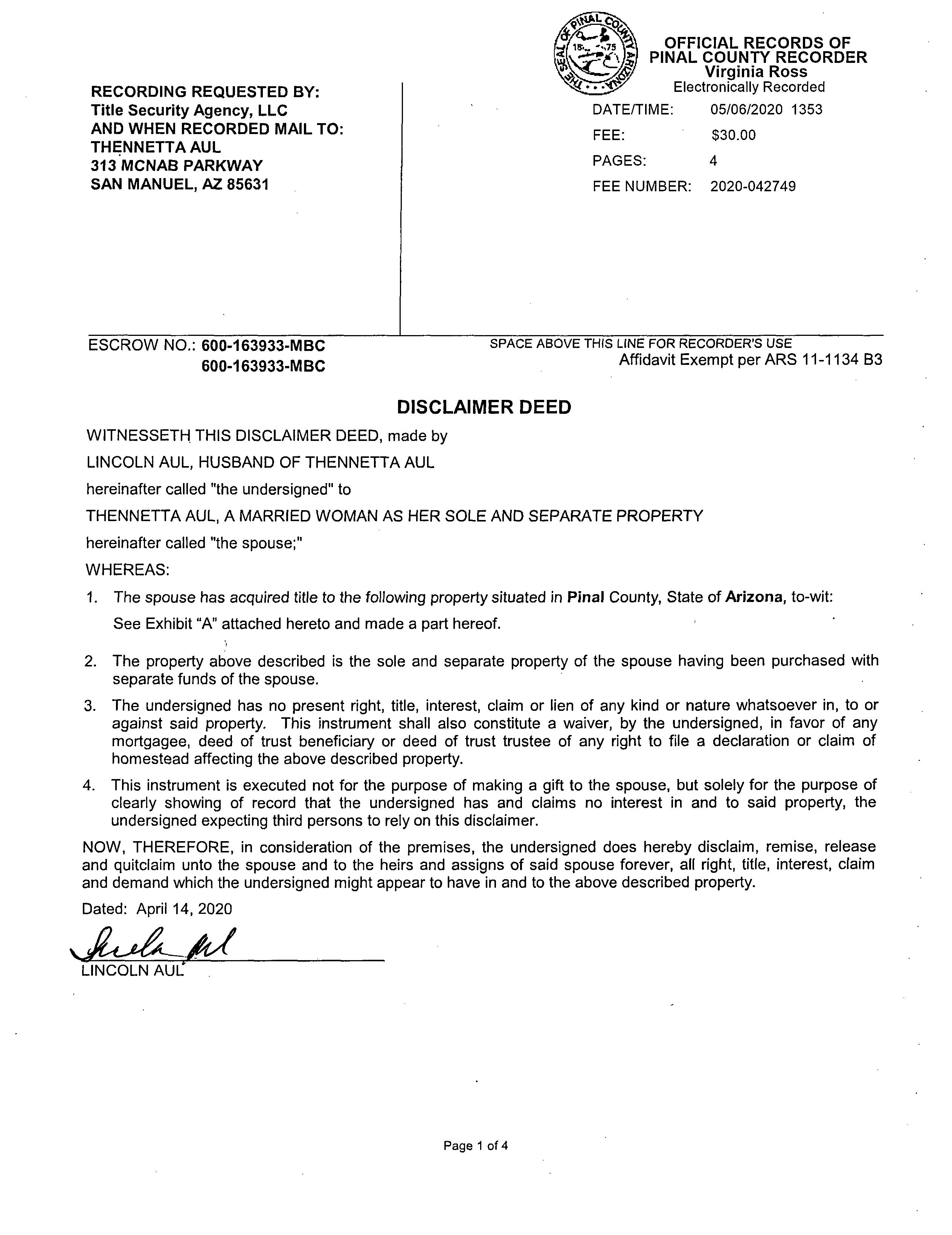 Prior Rec/Sale Date : 05/06/2020 / 04/06/2020
