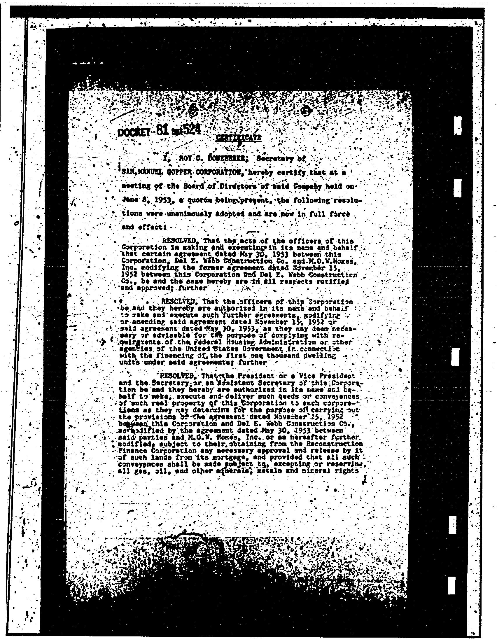 Subdivision : San Manuel Townsite