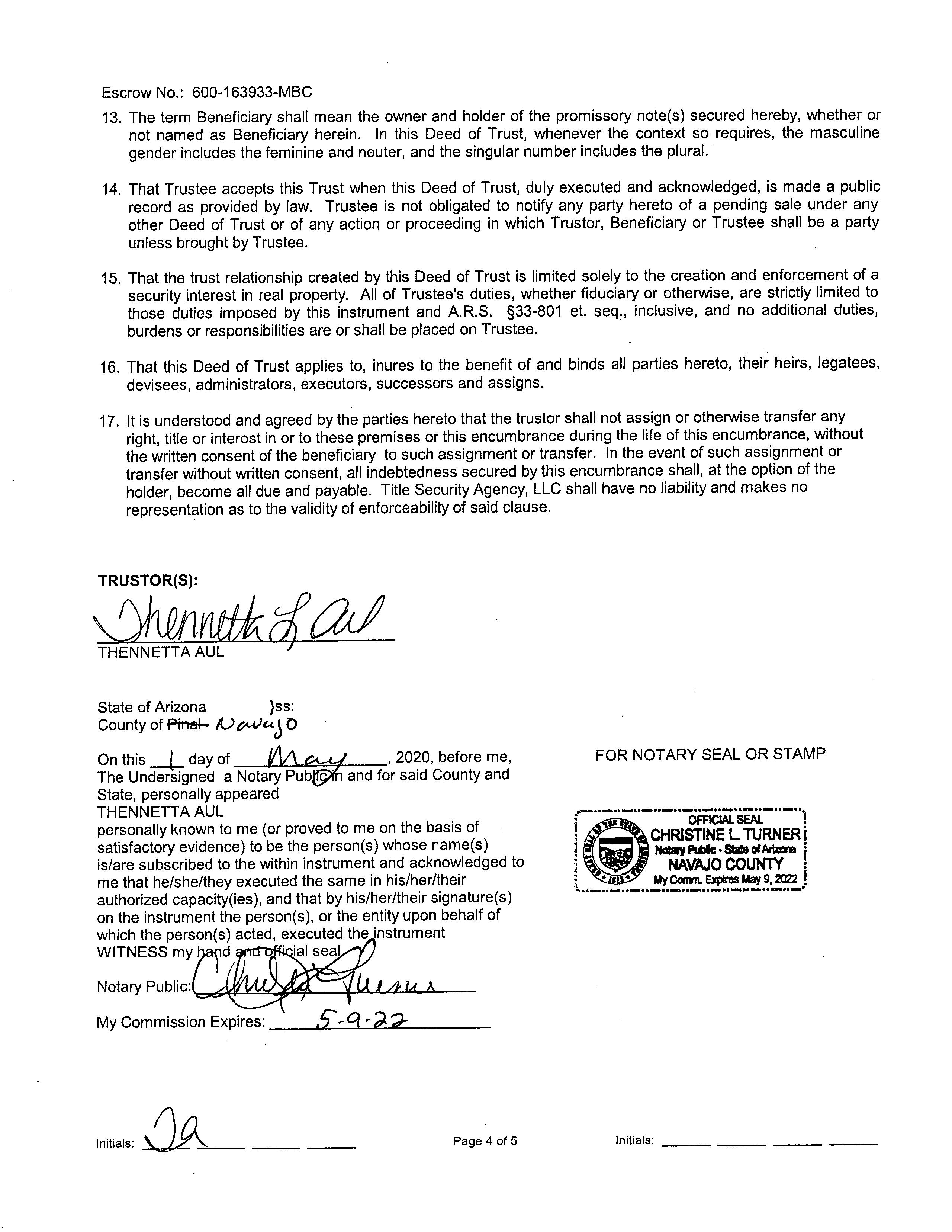 Mailing Address : 4832 N Casas Serenas Dr, Tucson AZ 85705-1839 C034