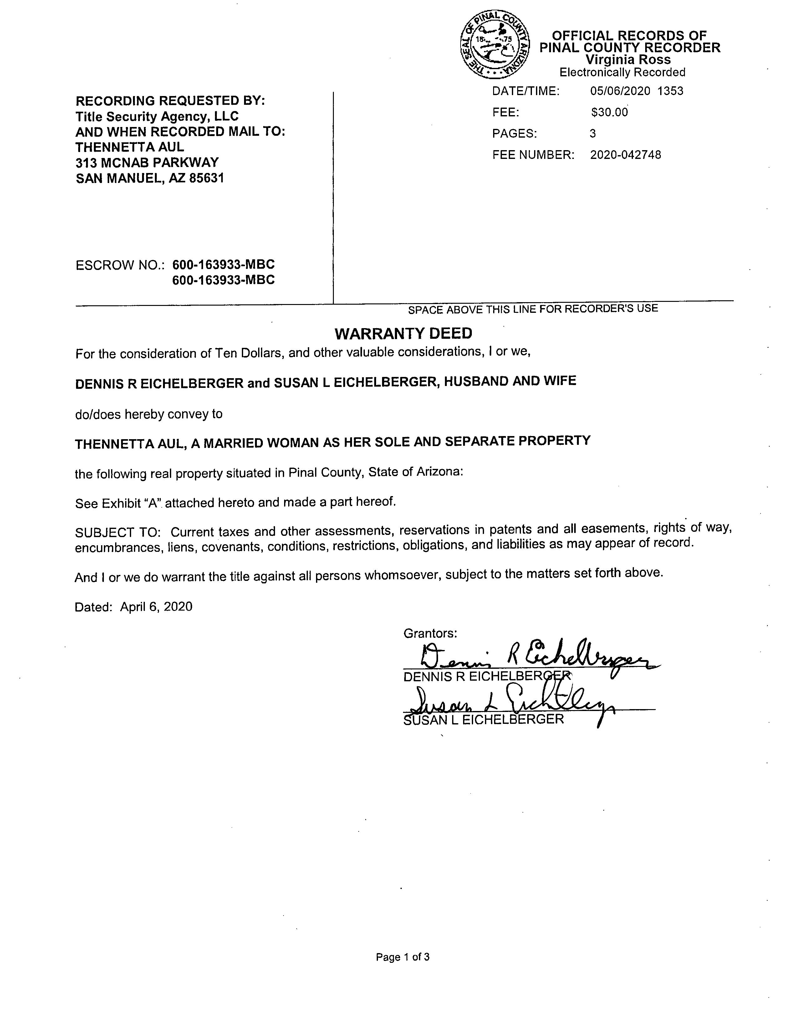 Deed Type : Warranty Deed