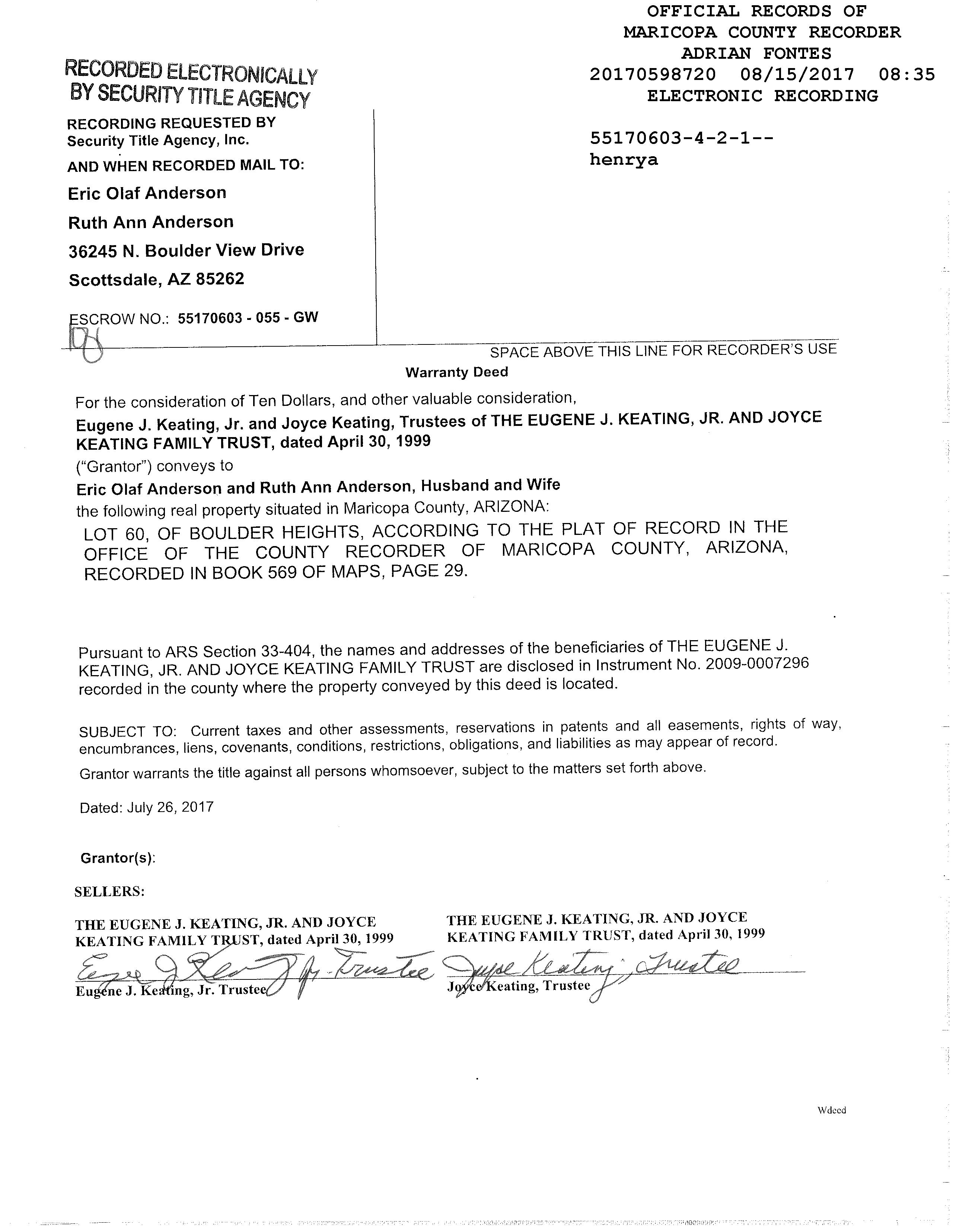 Mailing Address : 36245 N Boulder View Dr, Scottsdale AZ 85262-3901 R124
