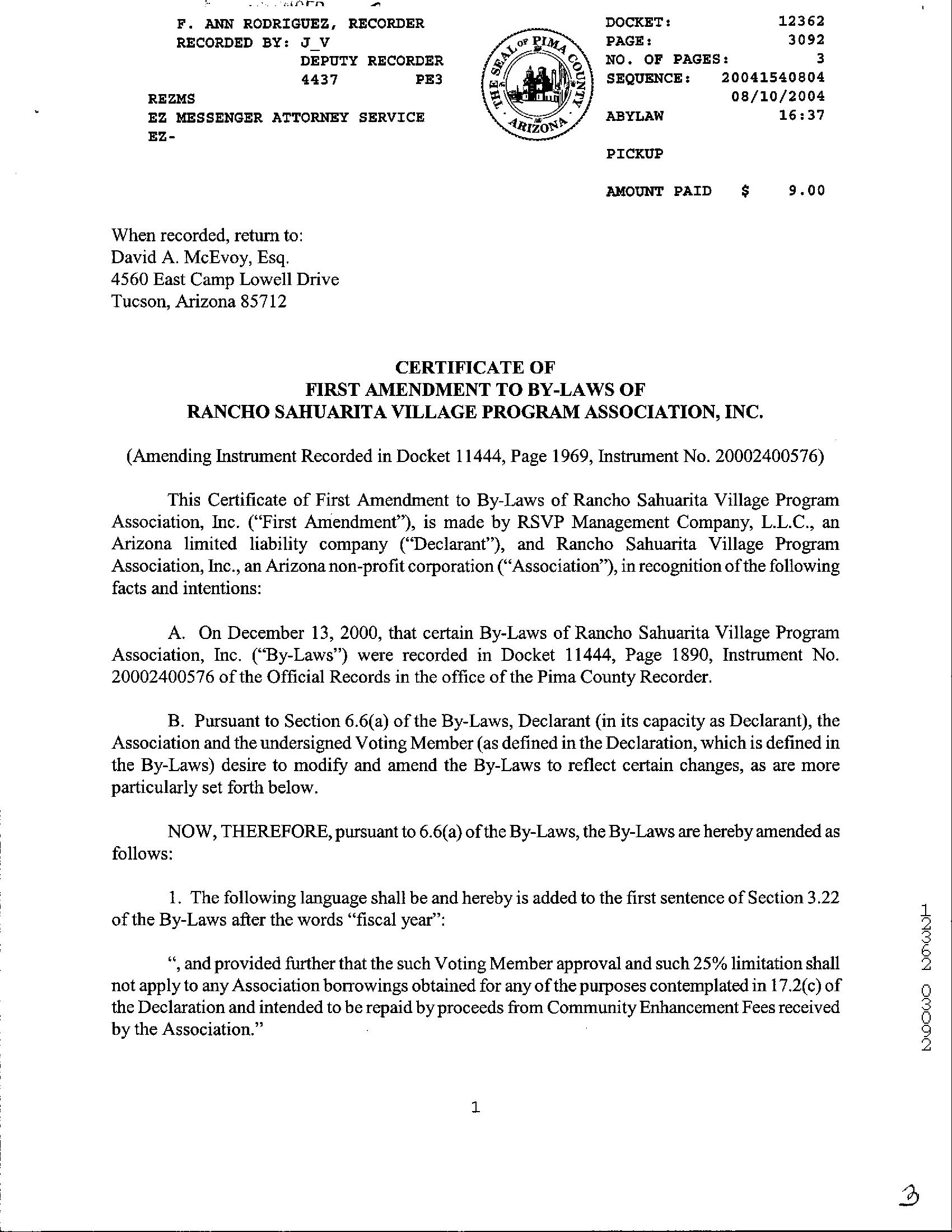 #4 251 E Paseo Celestial Sahuarita Az 85629 Owner Name: Johnston Benjamin /Johnston Danielle