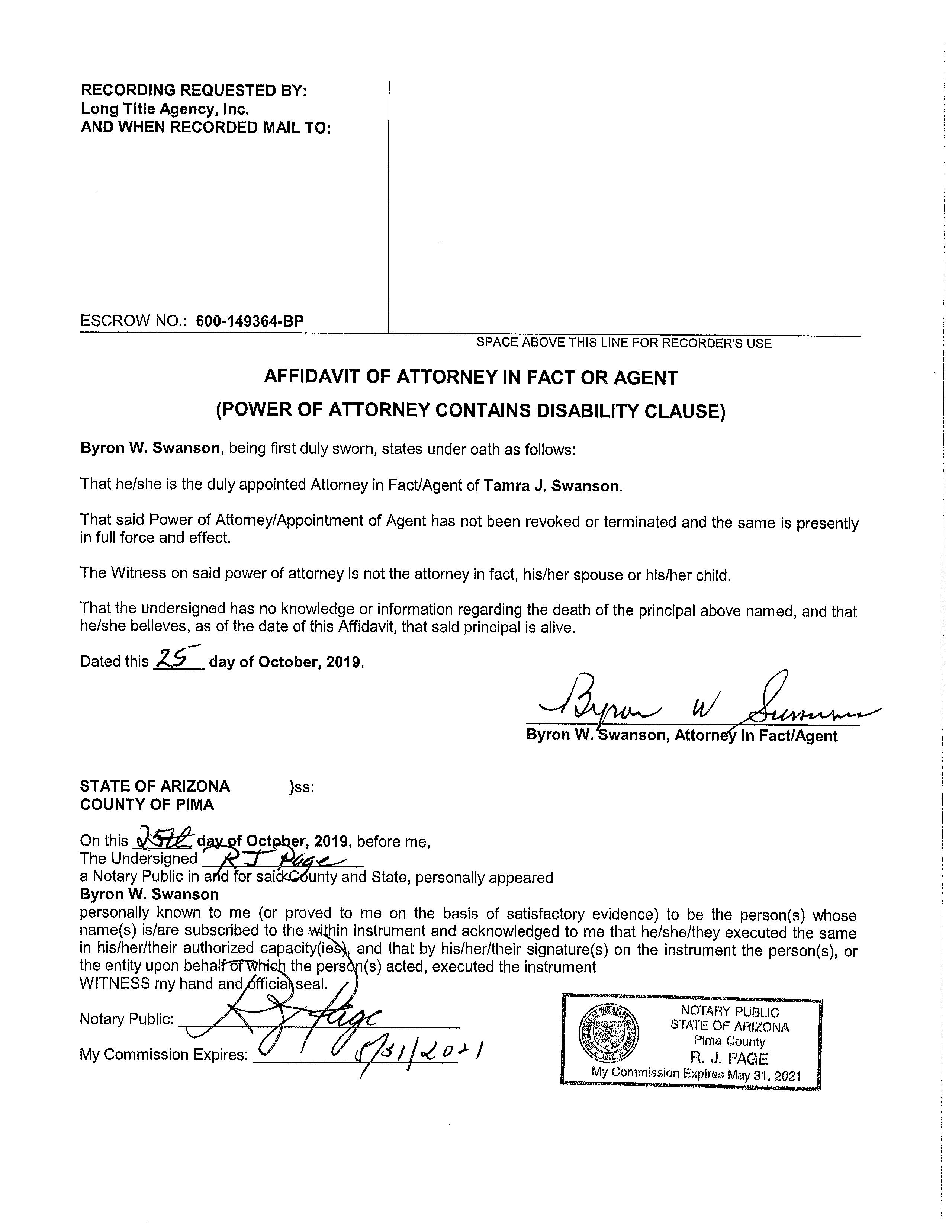 Owner Name: Swanson Byron W /Swanson Tamra J