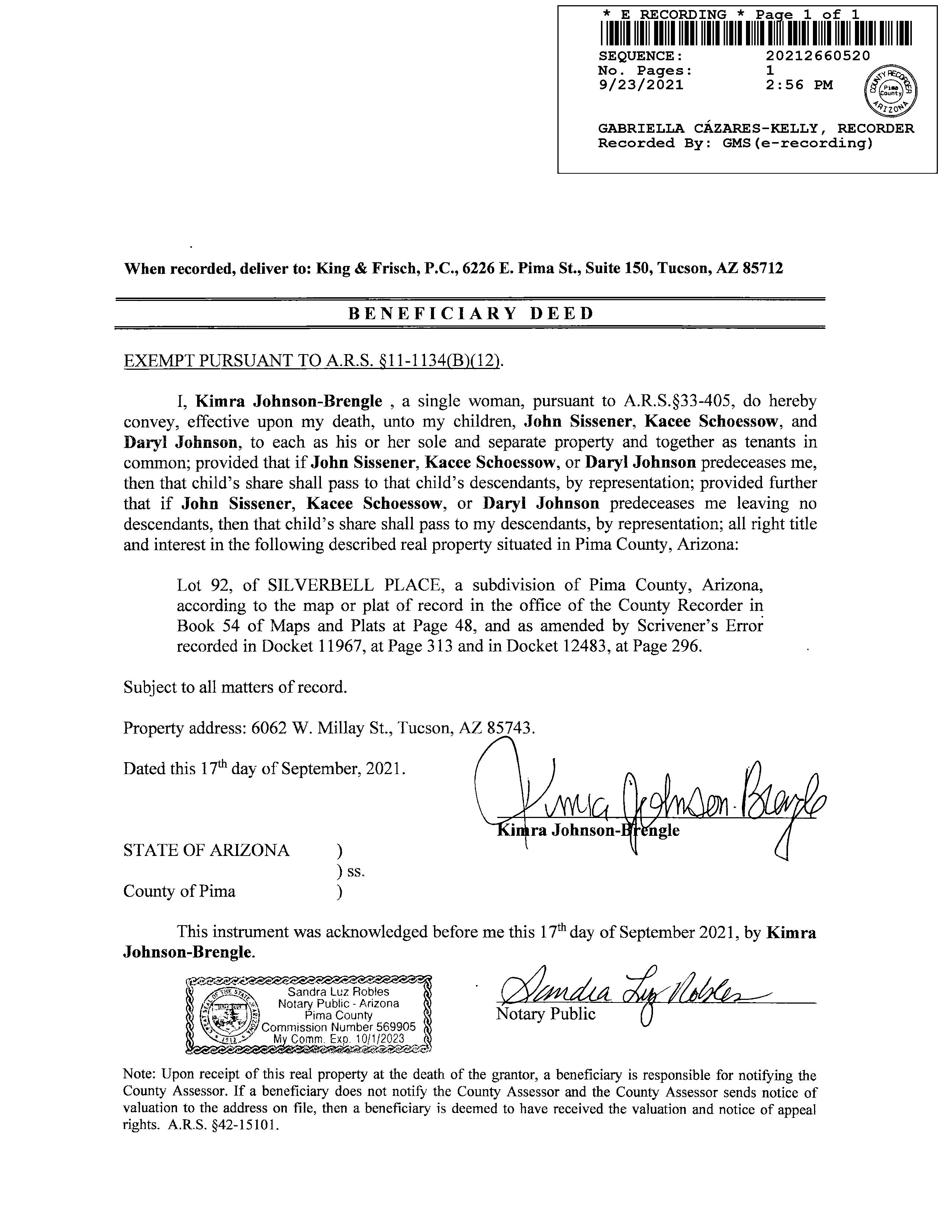 Mailing Address : 6062 W Millay St, Tucson AZ 85743-8258 R171