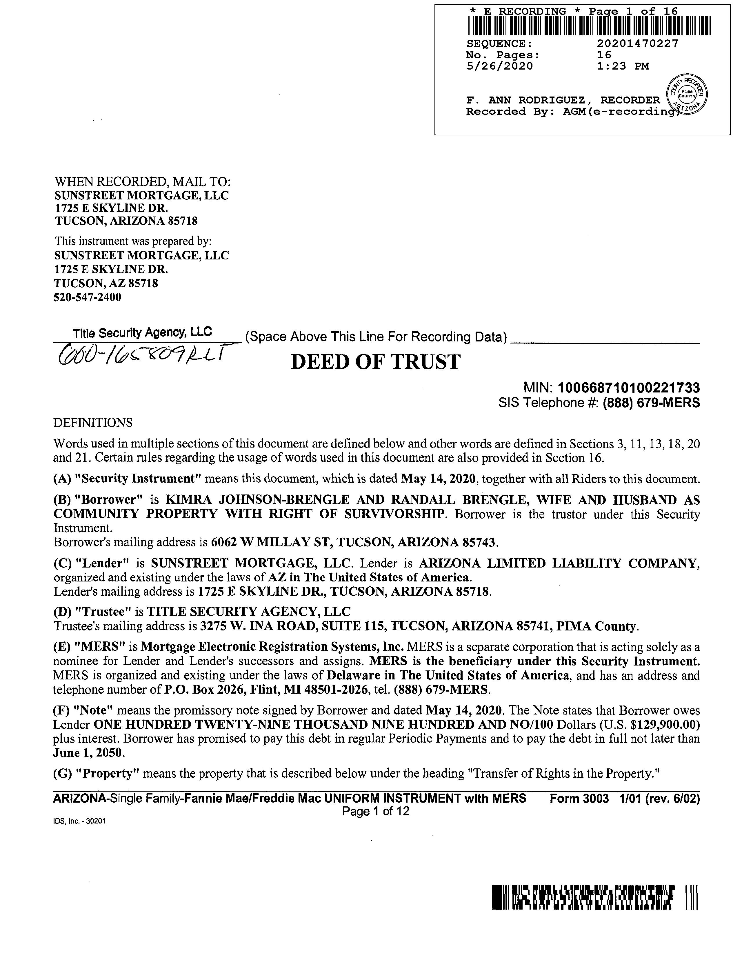 Subject Property : 6062 W Millay St Tucson AZ 85743