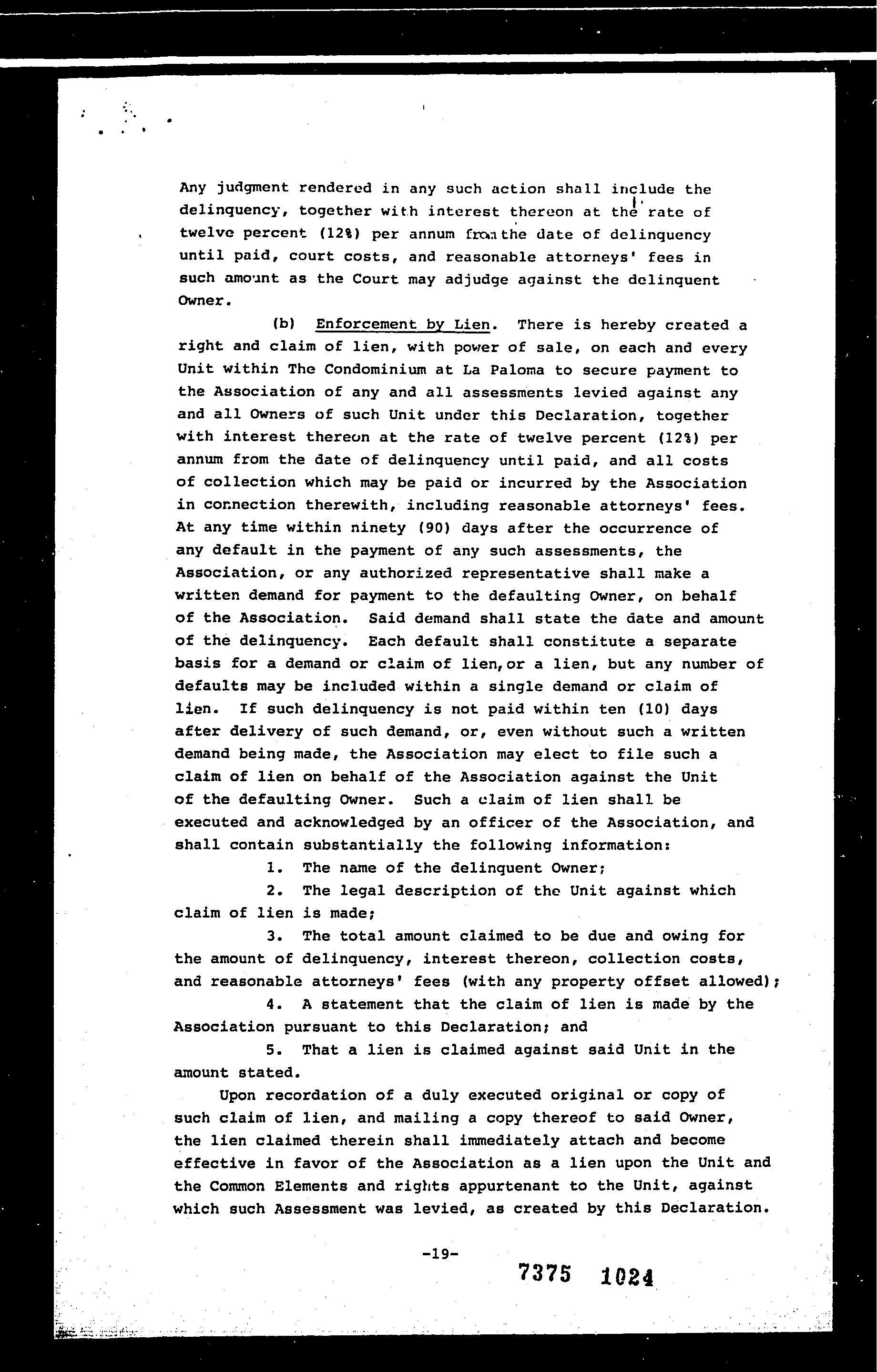 11 Unrecorded lien by a homeowners association