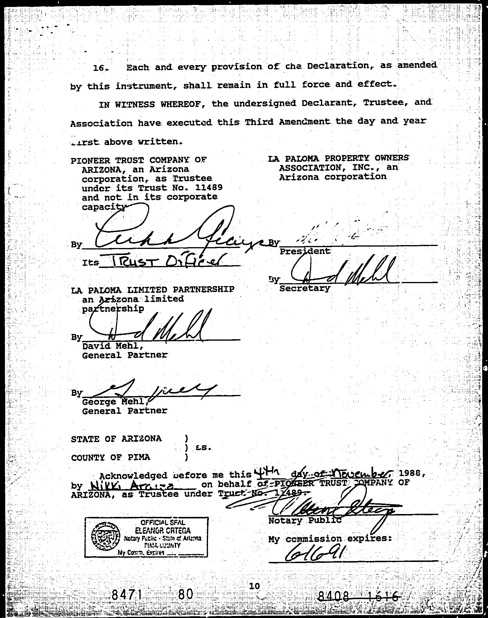 Owner Name : Baumann Carol Subdivision : Condominium At La Paloma