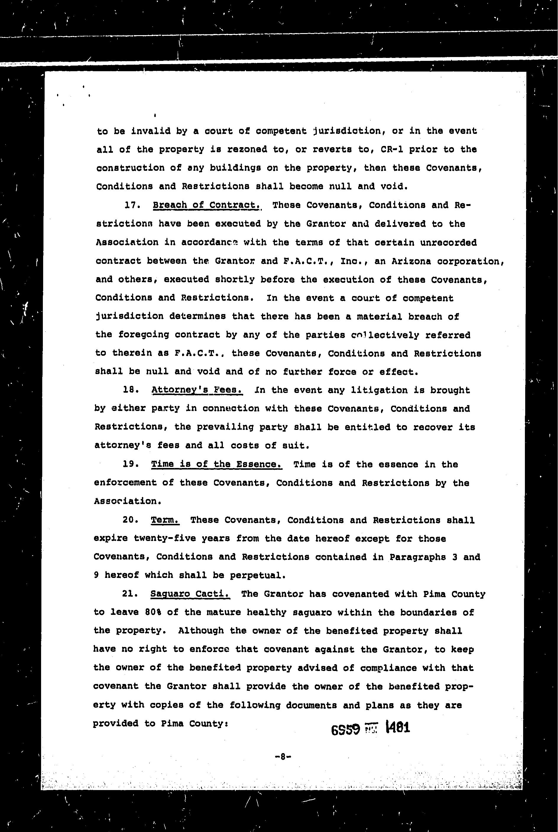 22 Covenant violation resulting in your title reverting to a previous owner