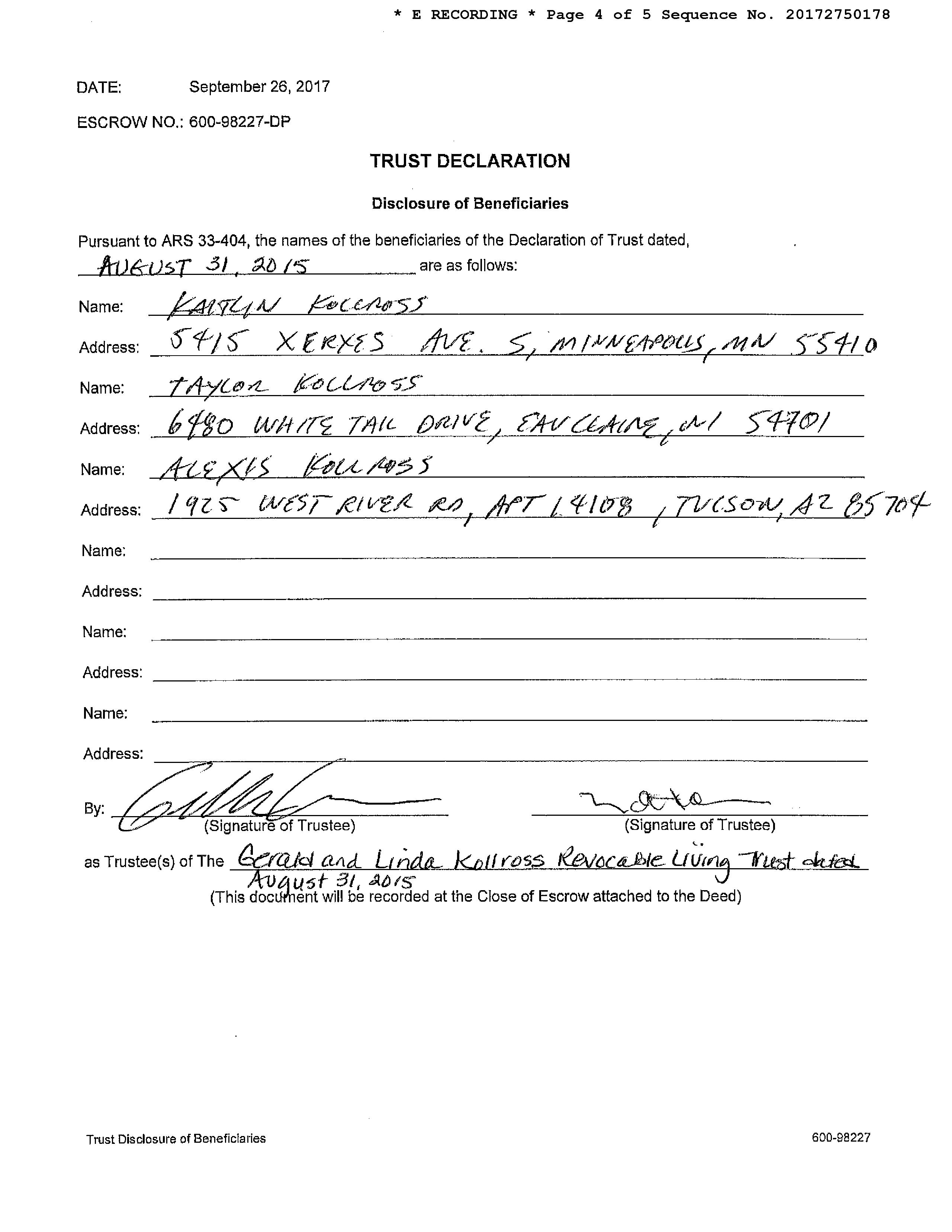 Owner Name: Kollross Gerald /Kollross Linda