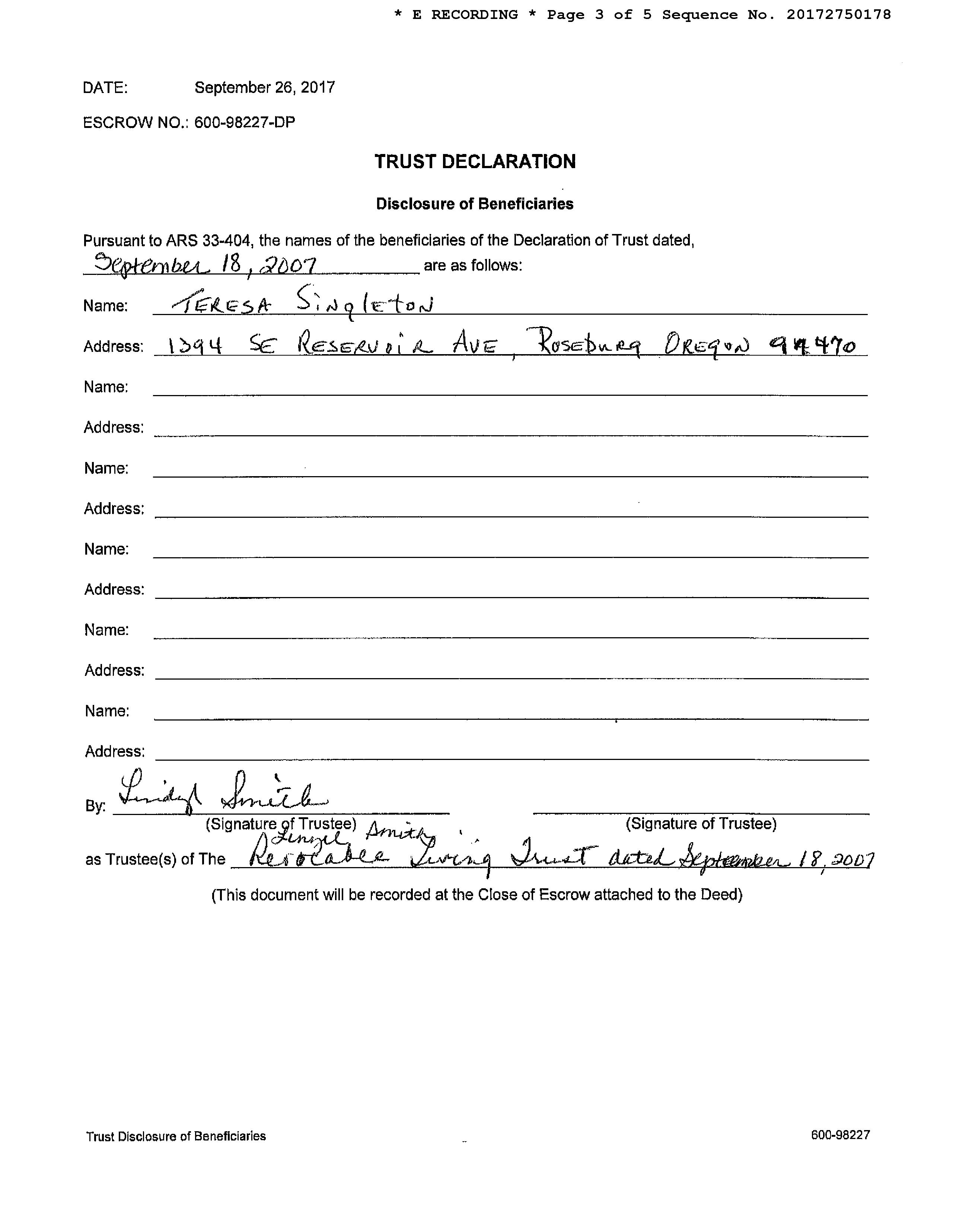 Seller Name : Smith Lindyl Trust