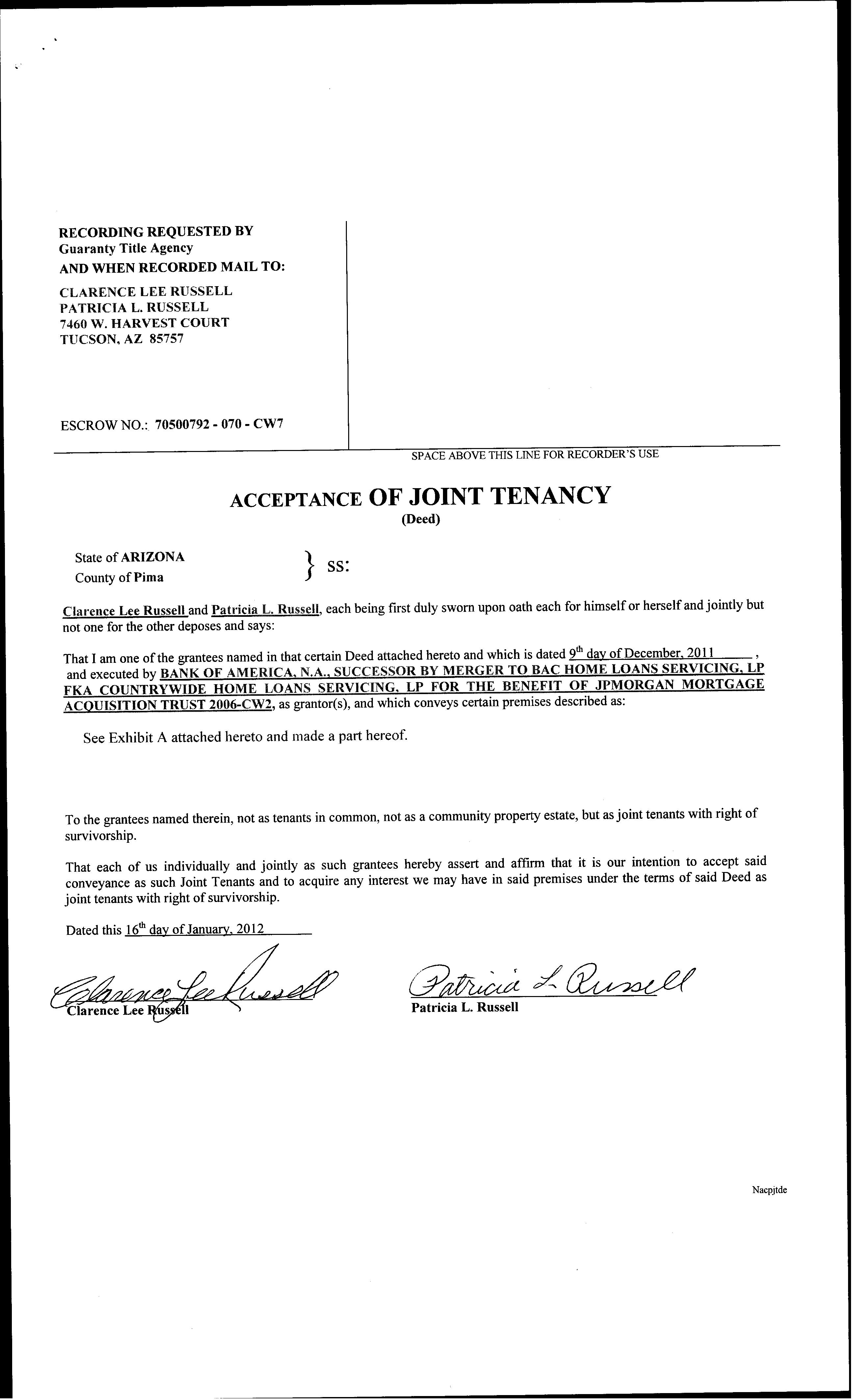 Mailing Address : 7460 W Harvest Ct, Tucson AZ 85757-7663 R152