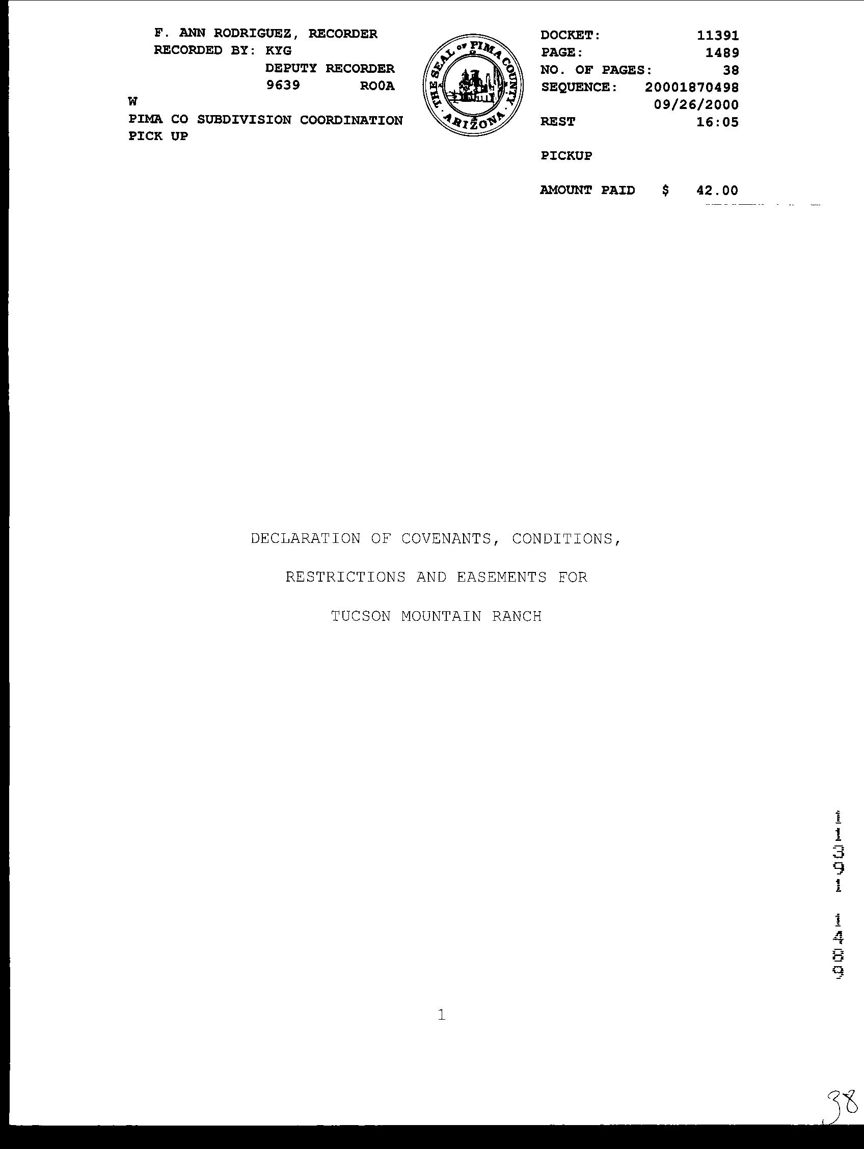 Subdivision : Tucson Mountain Ranch