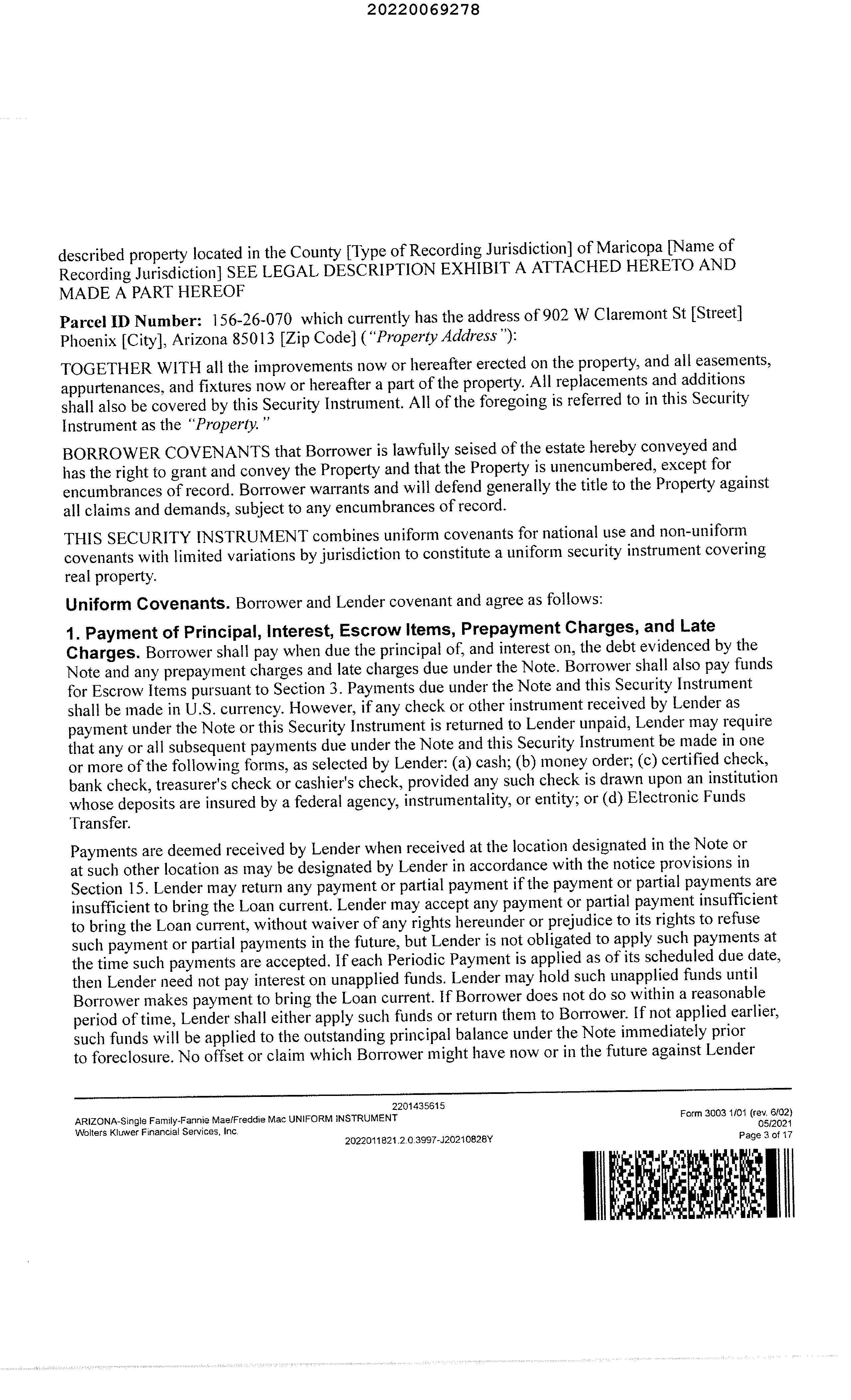 Mailing Address : 902 W Claremont St, Phoenix AZ 85013-1360 C020