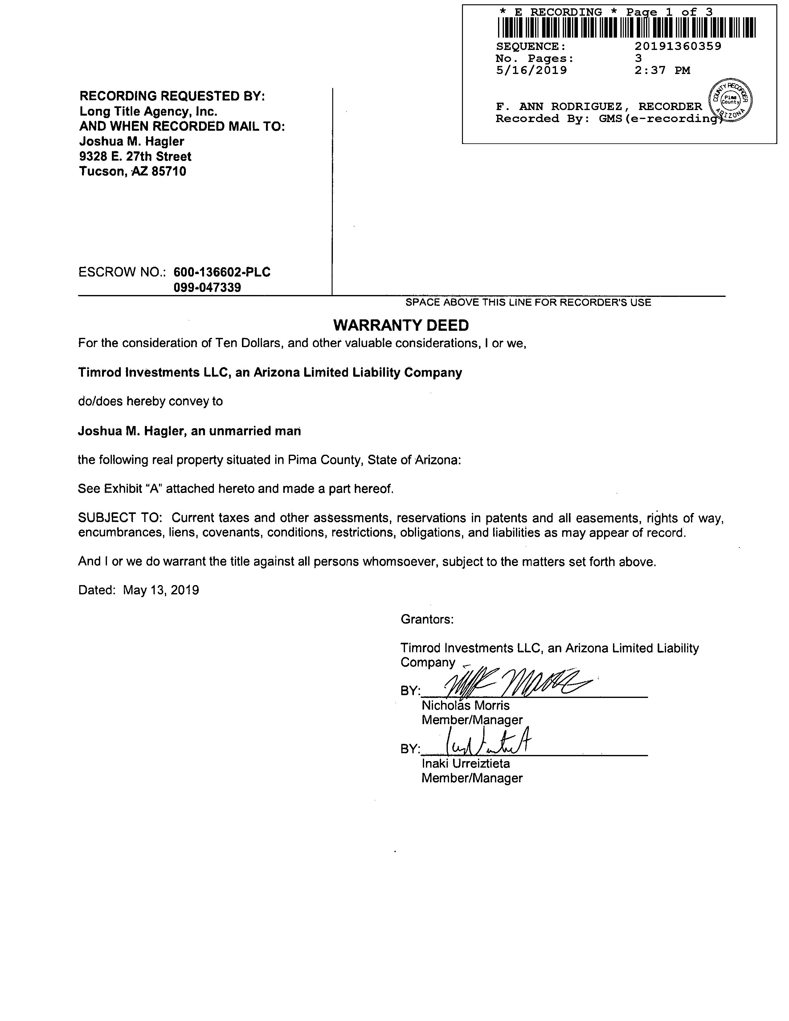 Recording/Sale Date : 05/16/2019 / 05/13/2019