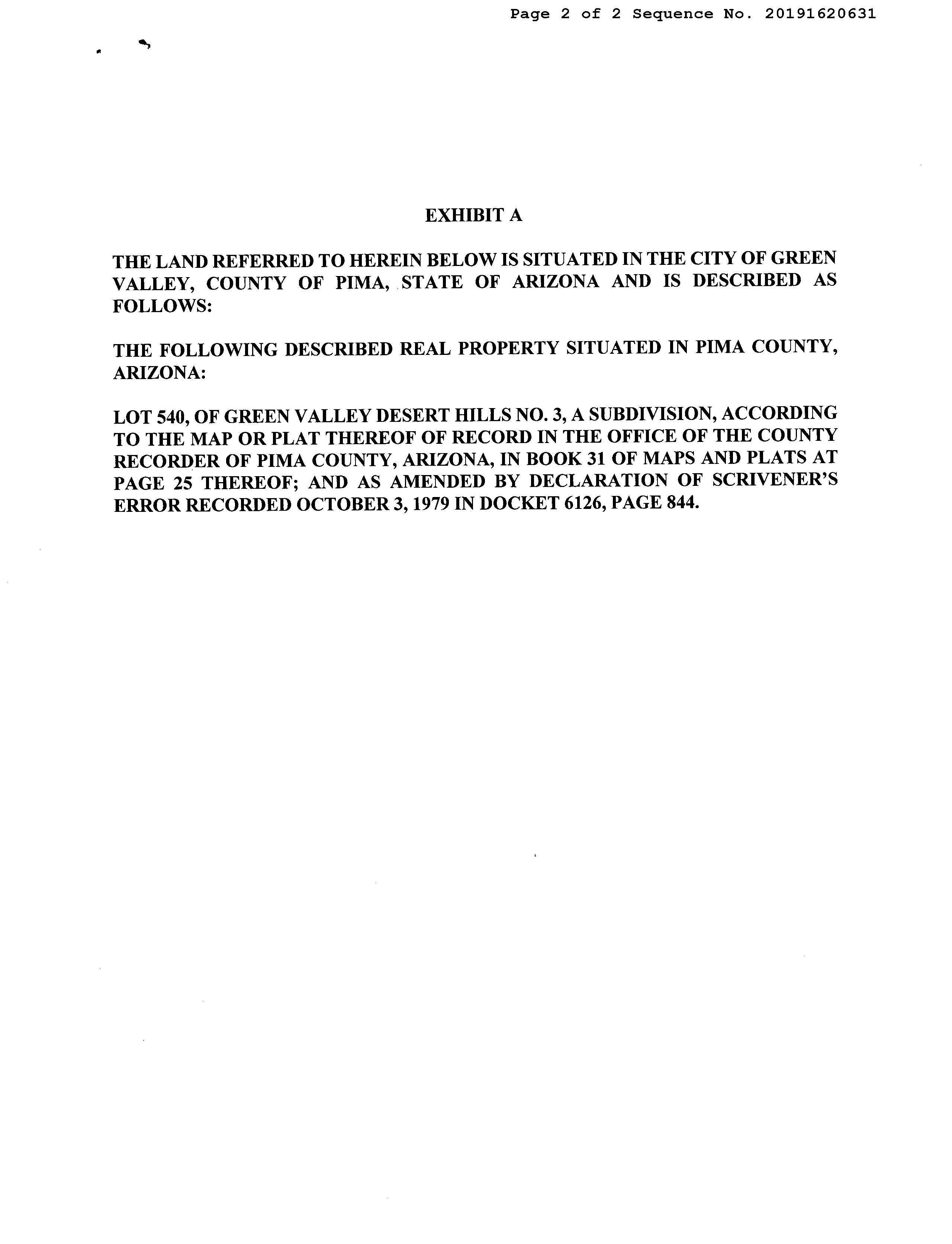 Legal Description : Green Valley Desert Hills No 3 (townhouses) Lot 540 Ptn Canoa Land Grant T18s R13e