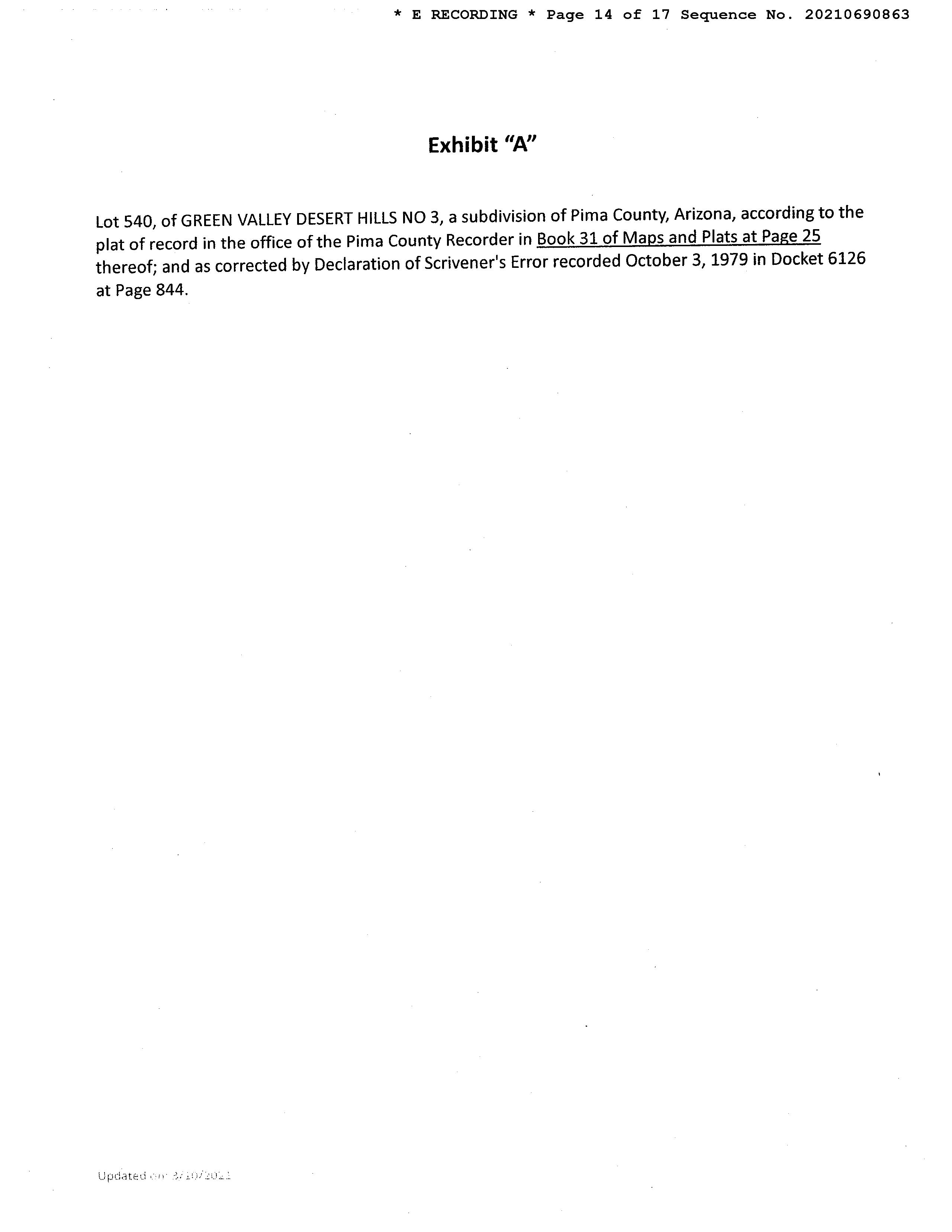 Owner Name : Arnold Joyce E Subdivision : Green Valley Desert Hills 04 Resub