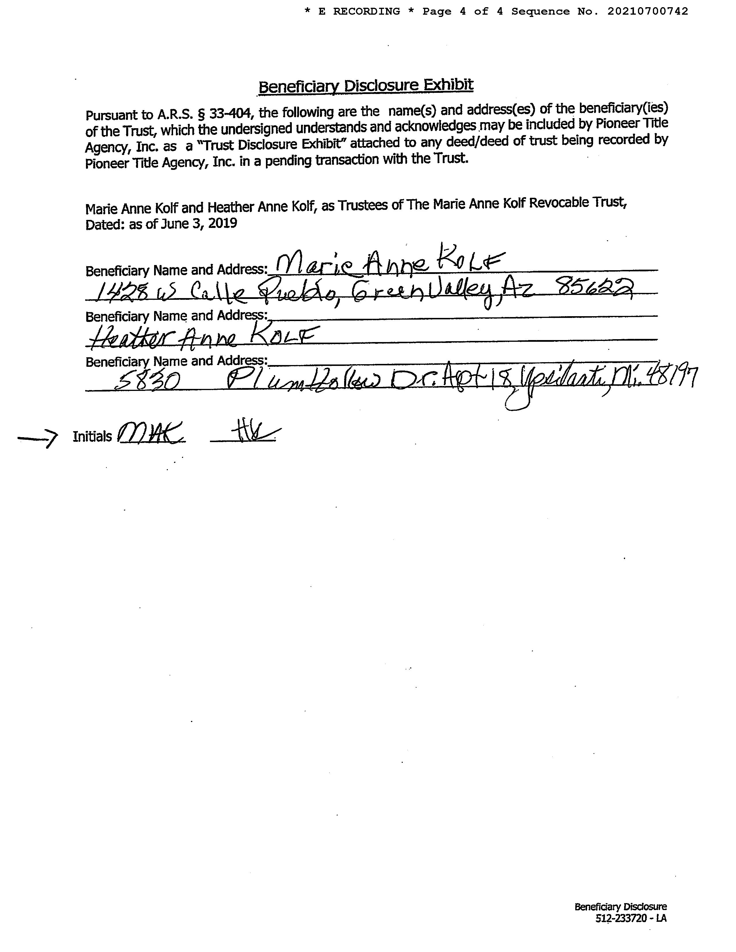 Owner Name : Freer Laurence T Tr & Freer Na Subdivision : Green Valley Desert Hills 04 Resub