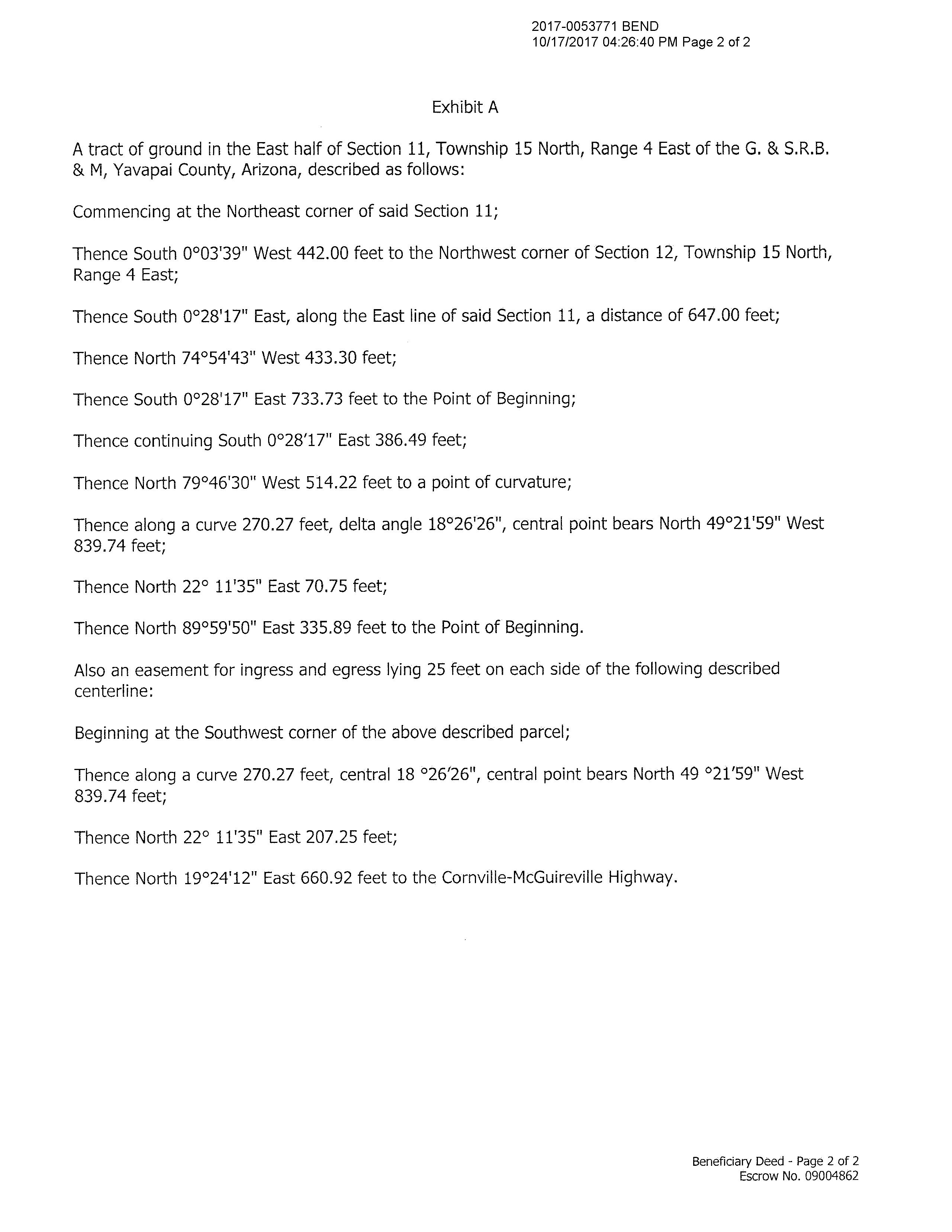 Legal Description : Irreg Pcl By M&b Lying In The Se4ne4 Of Sec 11 15 4e Cont 3.50 Ac County : Yavapai, Az