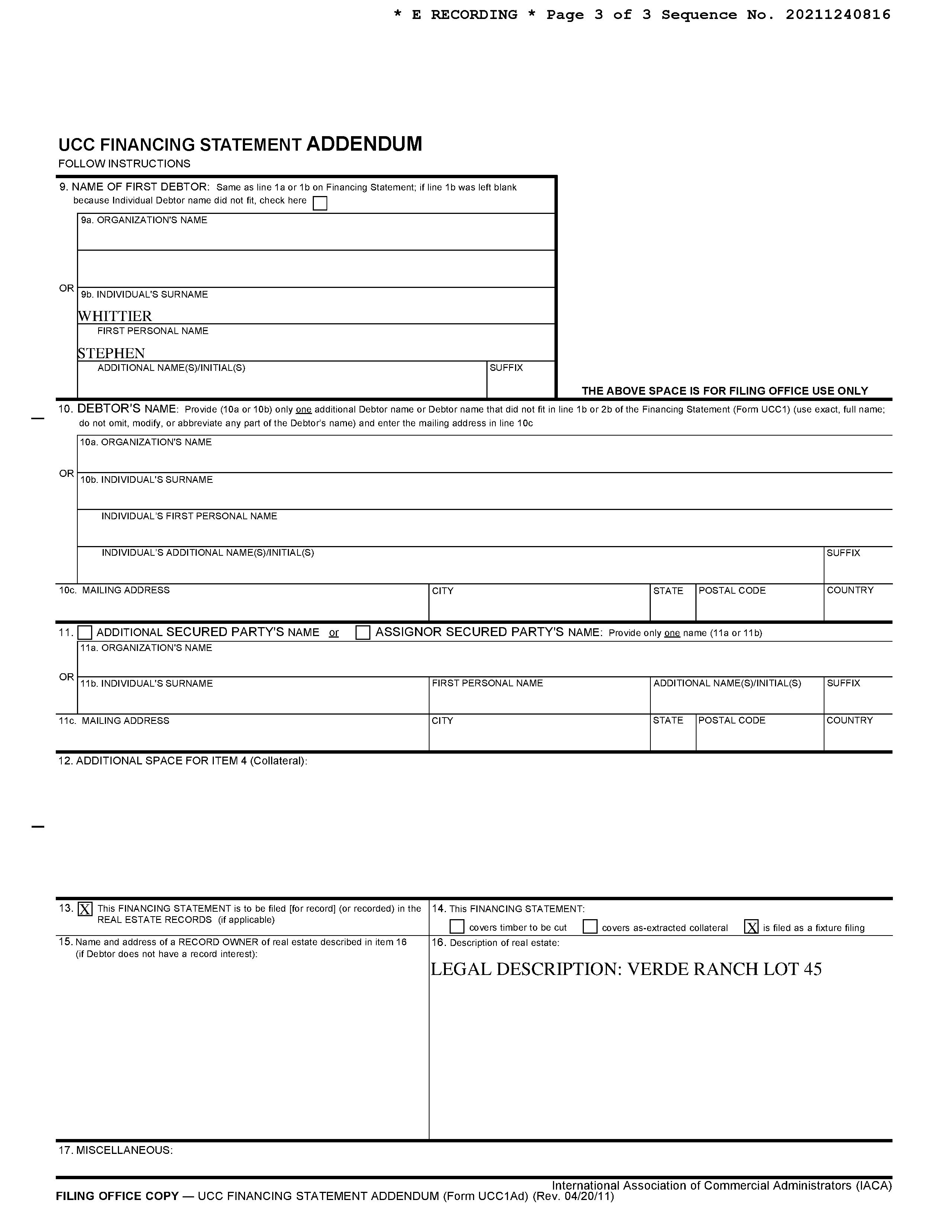 Owner Name : Whittier Stephen W / Whittier Amy E