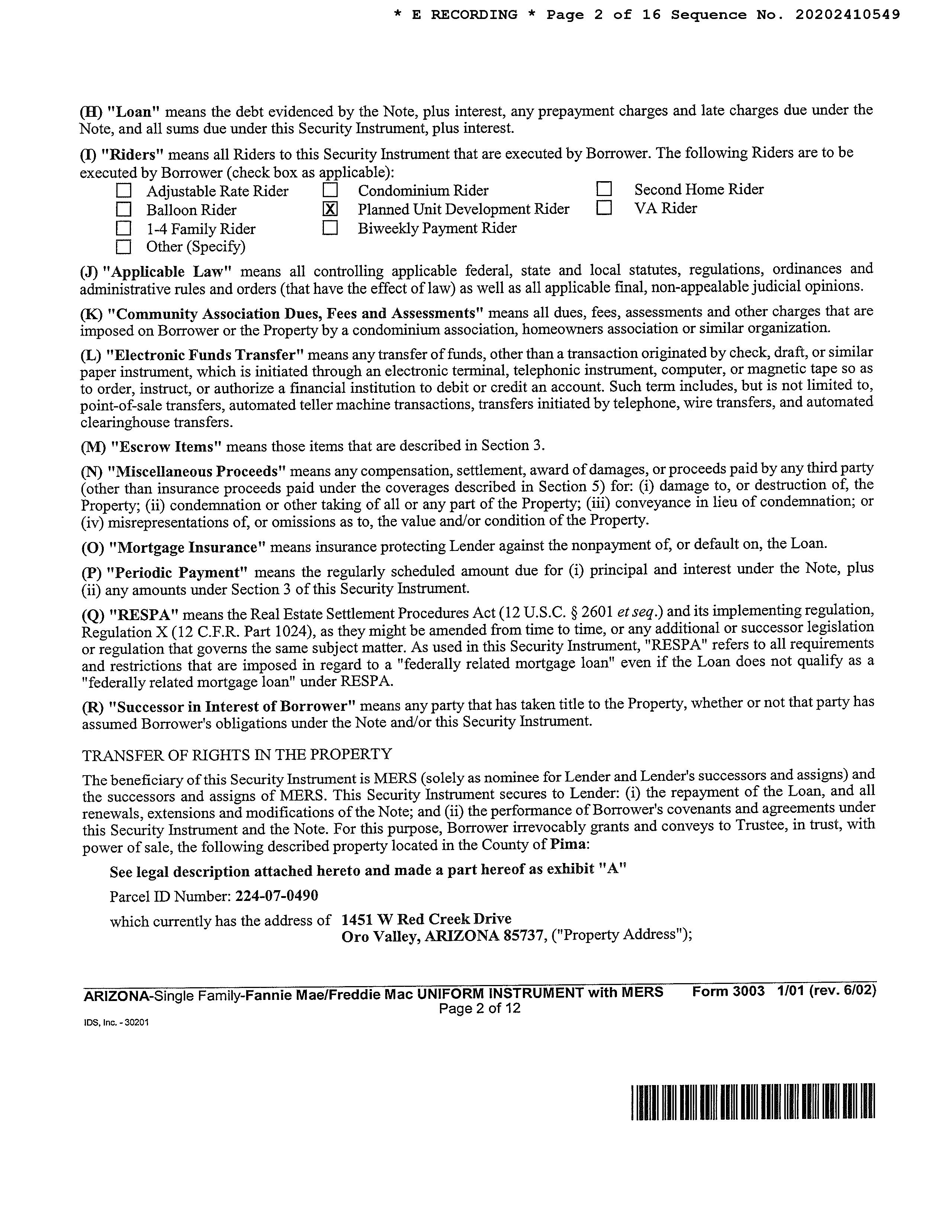 Mailing Address : 1451 W Red Creek Dr, Tucson AZ 85737-7327 R125