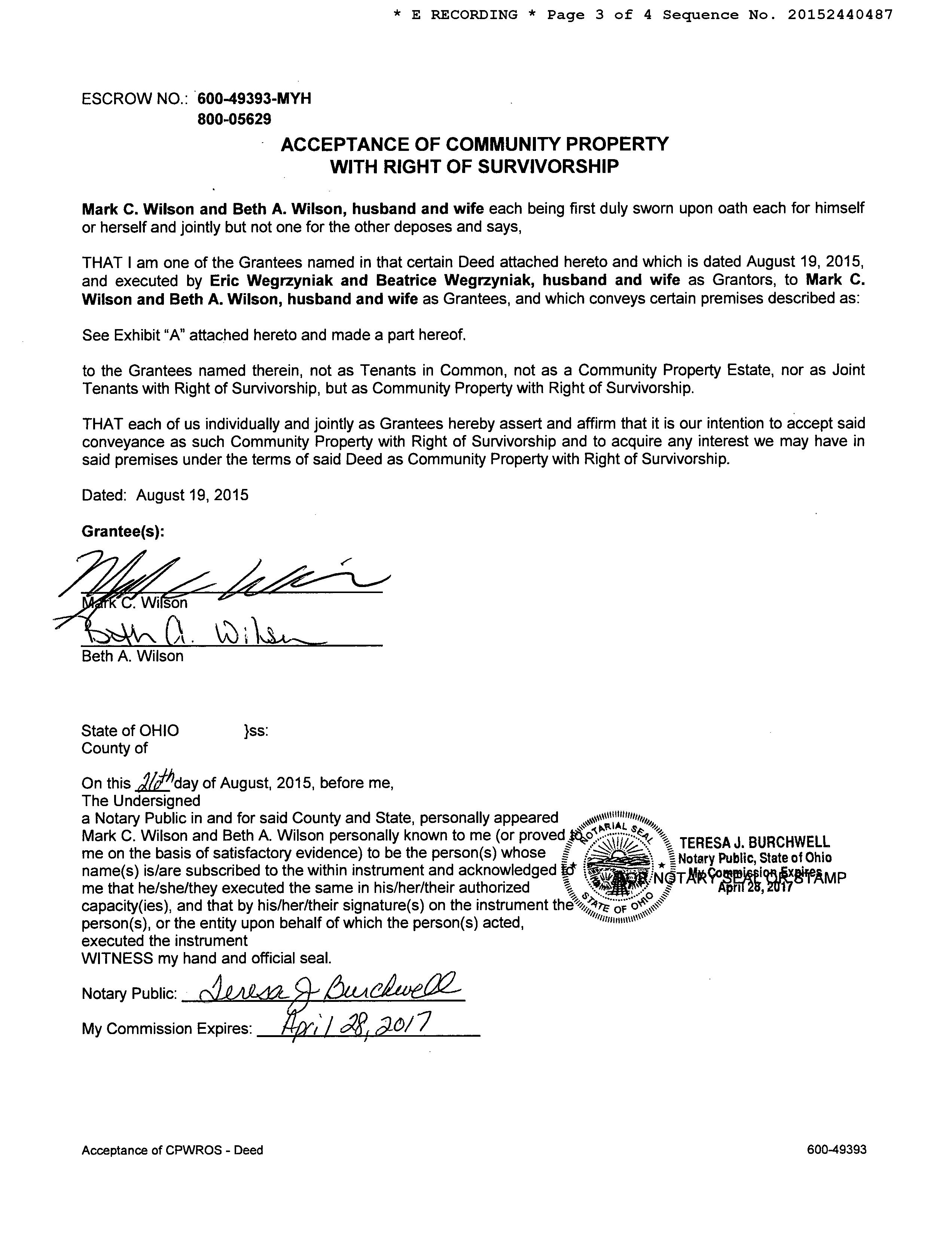 Owner Name : Wilson Mark C / Wilson Beth A
