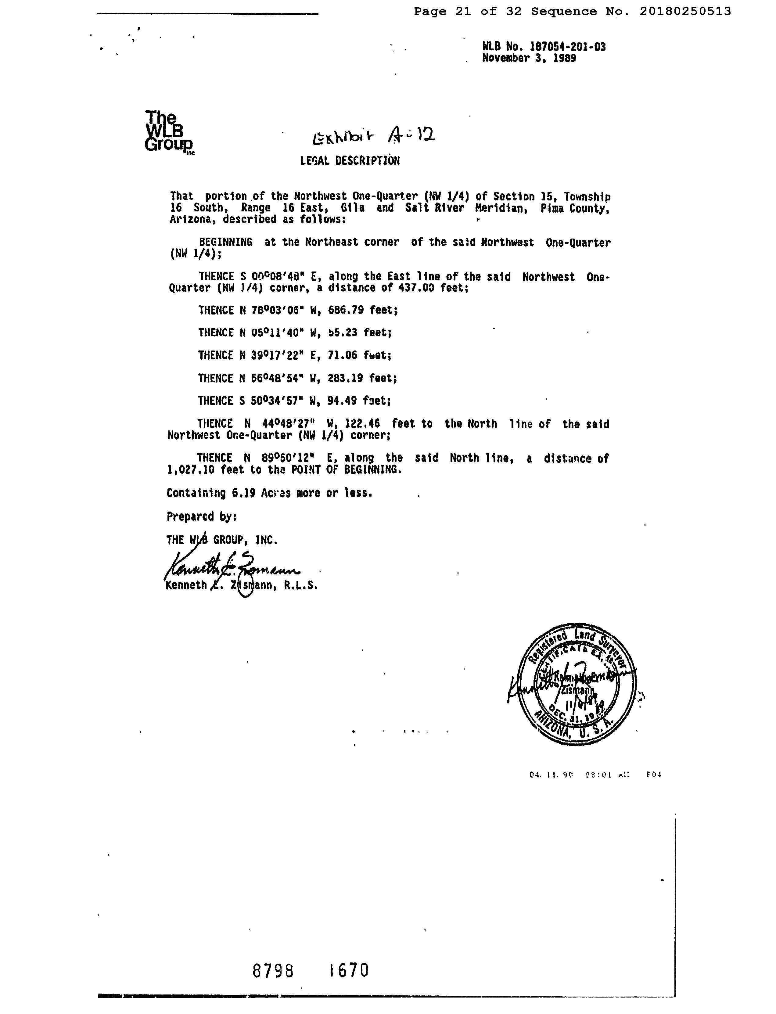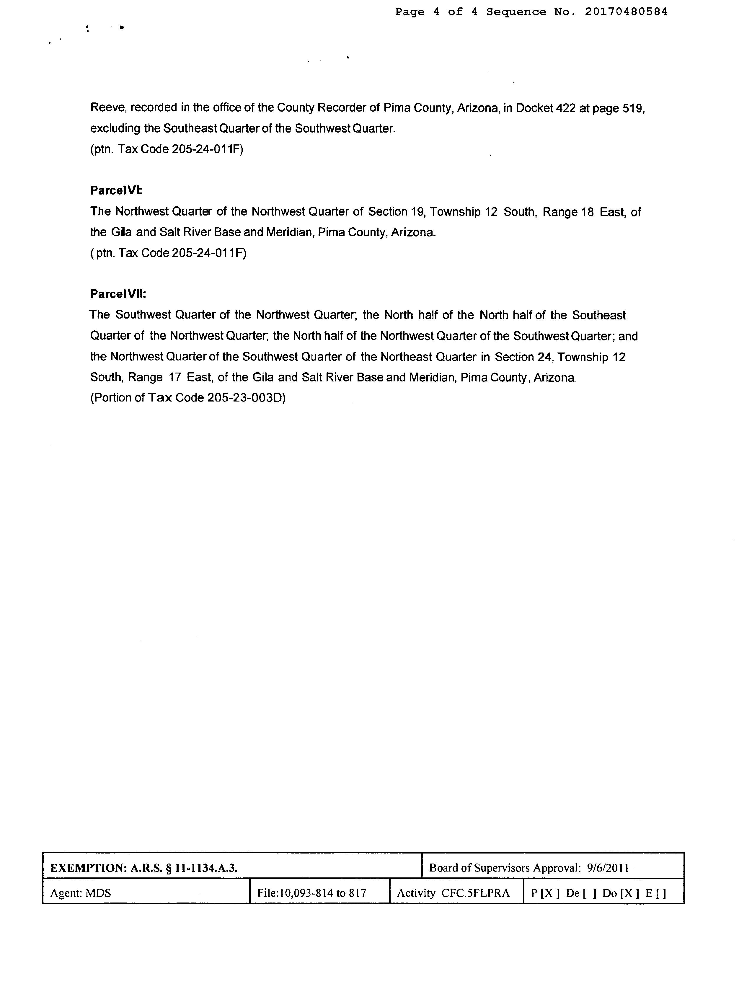 Legal Description : S376.37' W2 Nw4 Ne4 & W2 E2 Nw4 Ne4 4.26 Ac Sec 13-16-16 Being Ptn Vail Lime No 5 Placer Mining Claim