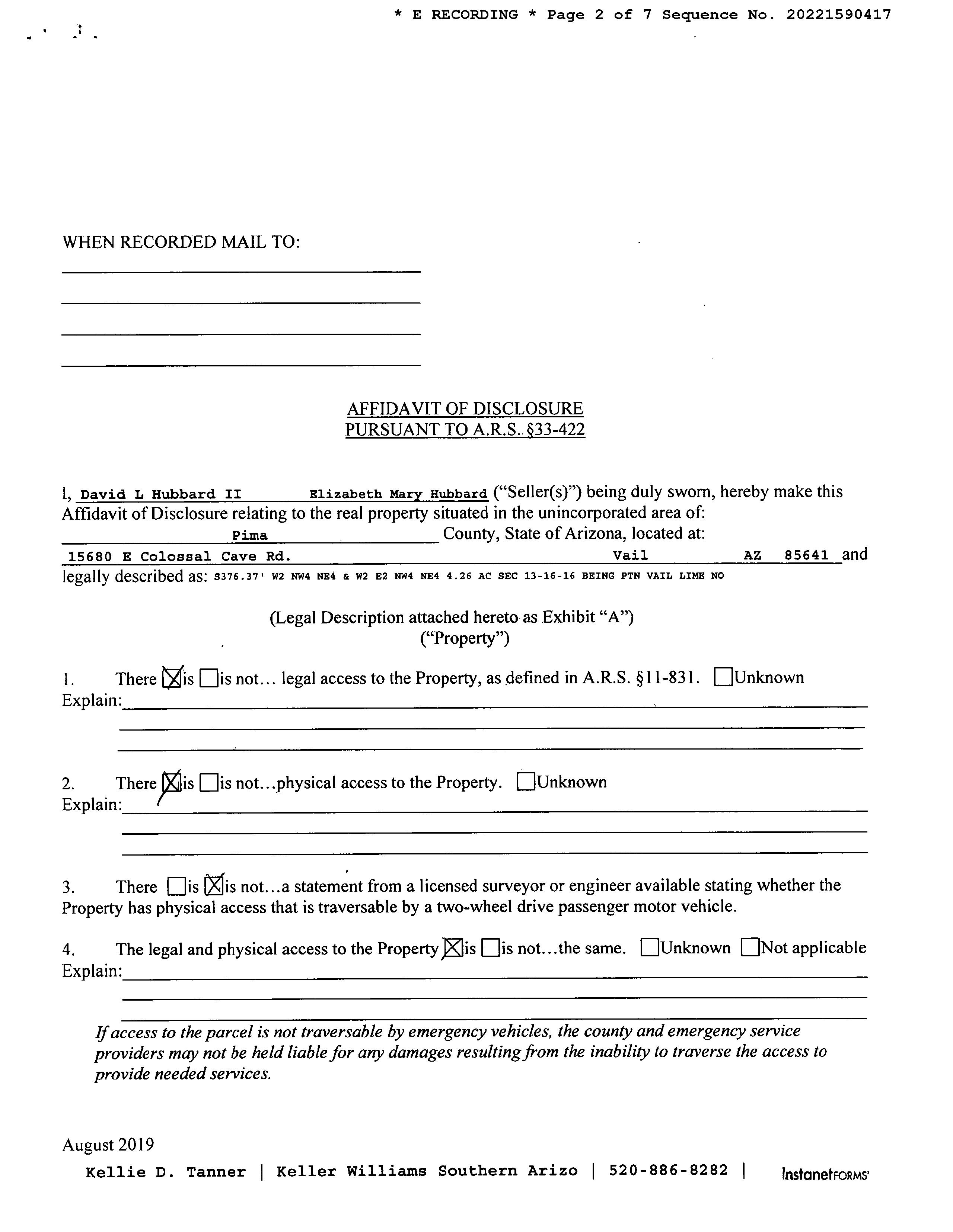 Subject Property : 15680 E Colossal Cave Rd Vail AZ 85641