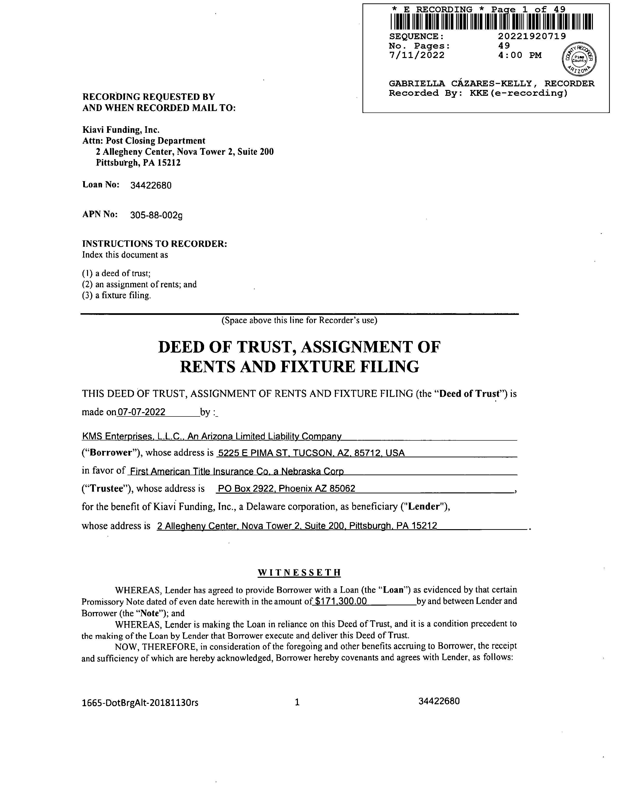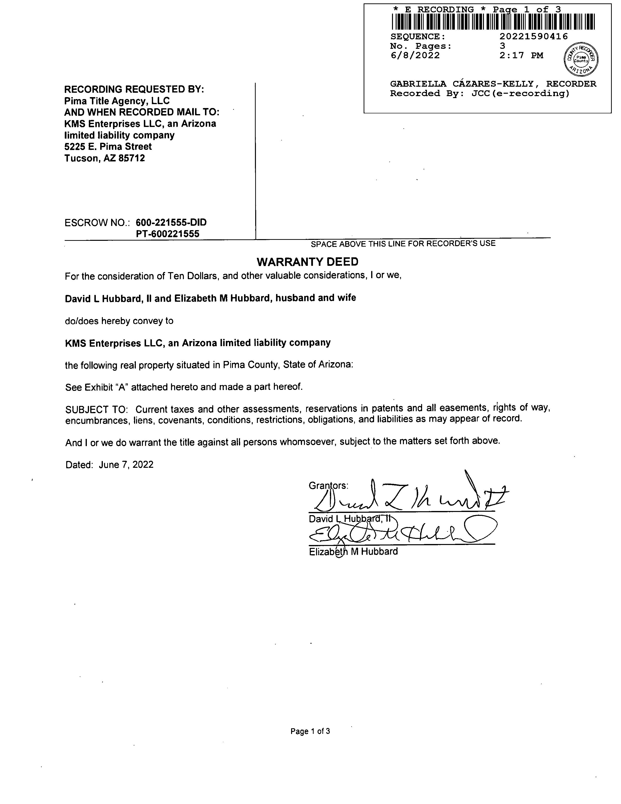 Owner Name : Kms Ents Llc REO Recording Date : 06/08/2022