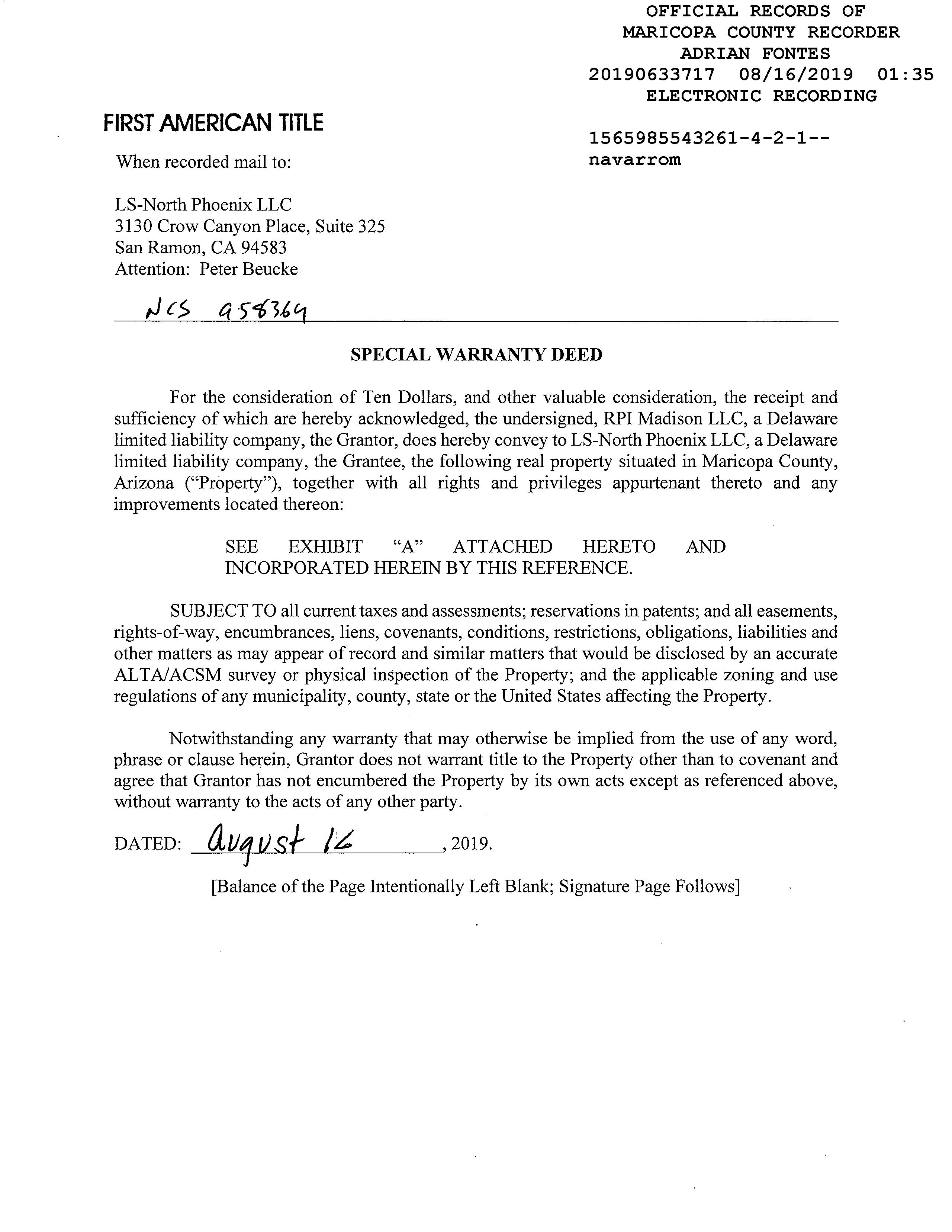 APN / Alternate APN: 164-37-269 / Deed Type: Special Warranty Deed Land Use: Sfr
