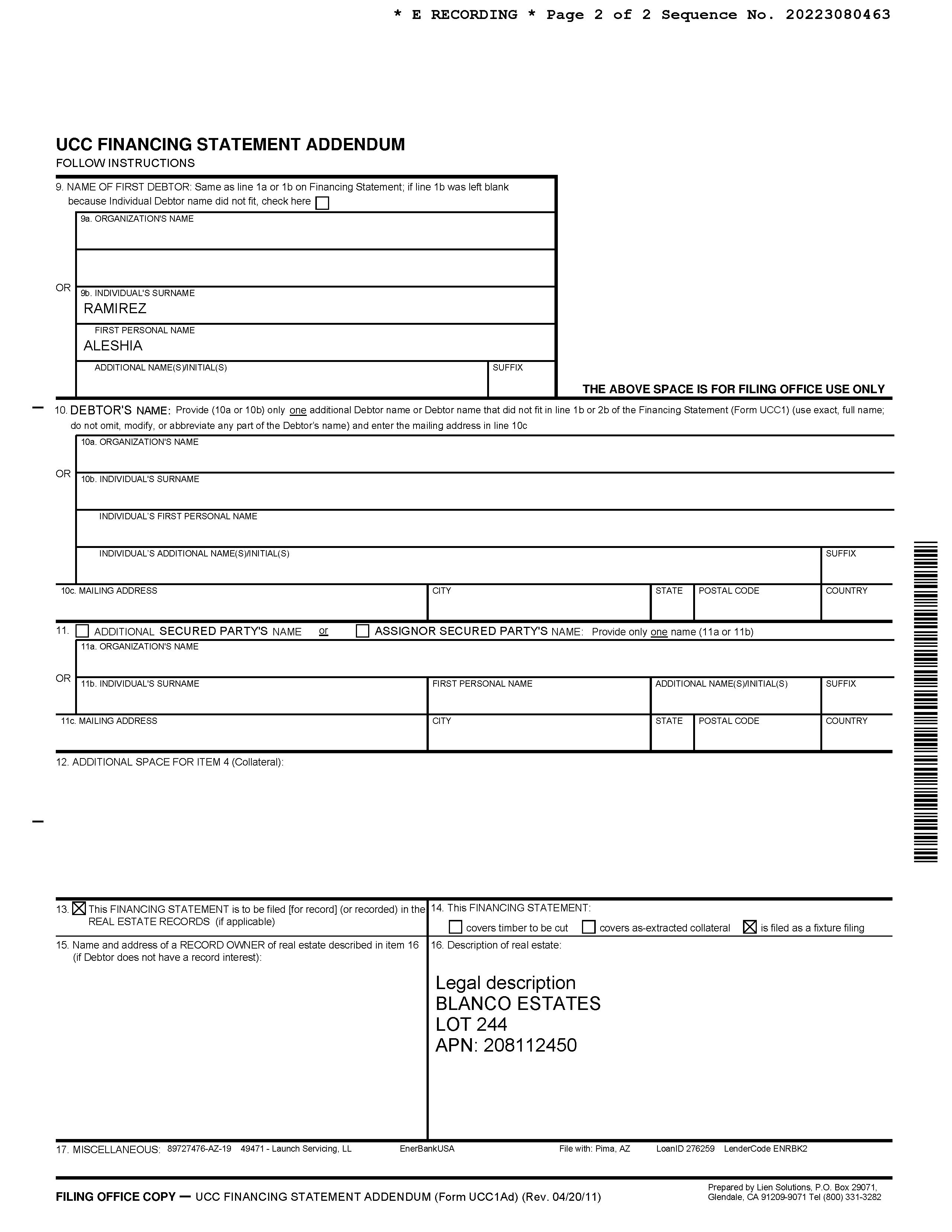 Legal Description : Blanco Estates Lot 244