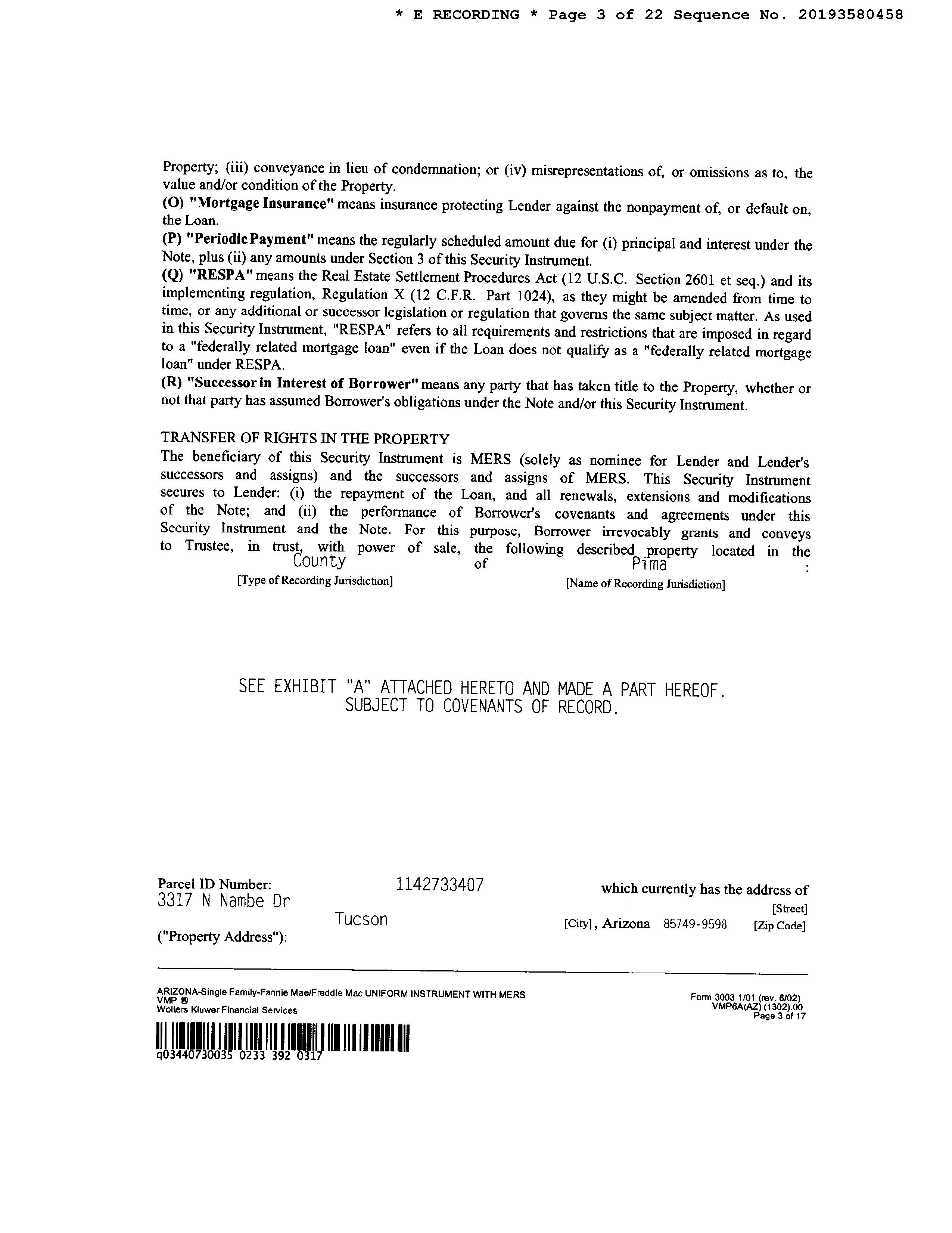 Subject Property : 3317 N Nambe Dr Tucson AZ 85749