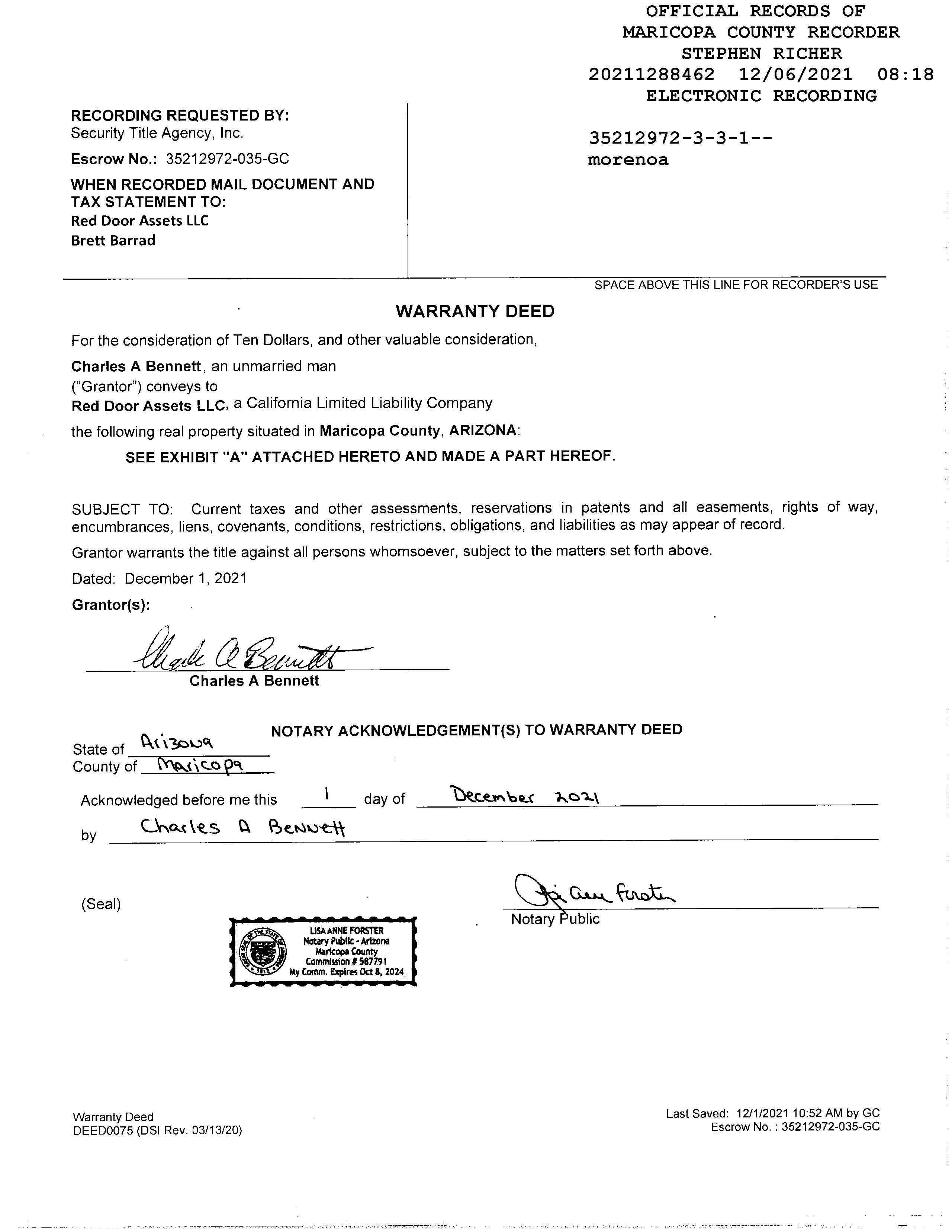Owner Name: Red Door Assets Llc / APN / Alternate APN: 127-17-077 / Deed Type: Warranty Deed