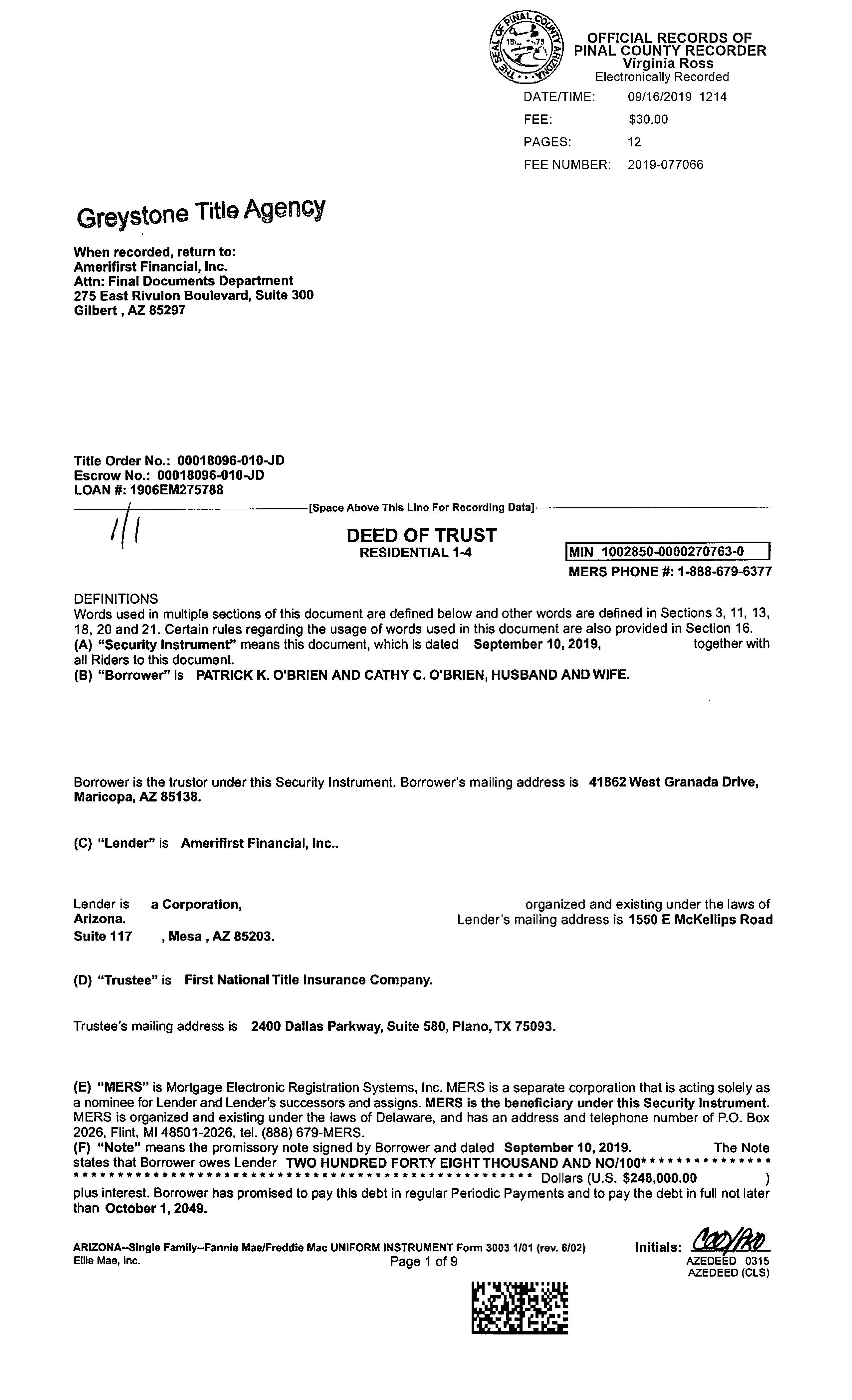 Owner Name: O Brien Patrick K /O Brien Cathy C APN / Alternate APN: 512-41-556 / Deed Type: Warranty Deed