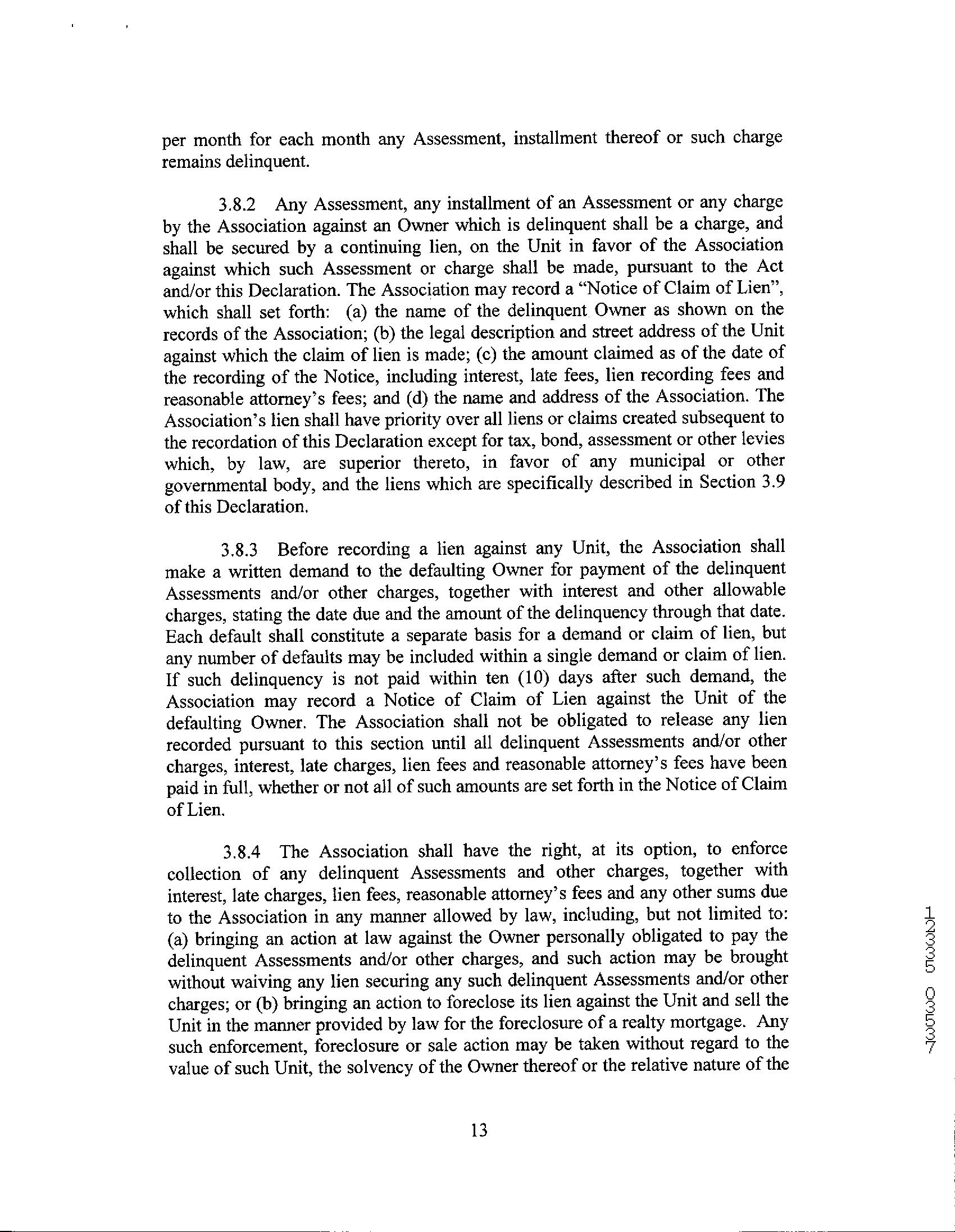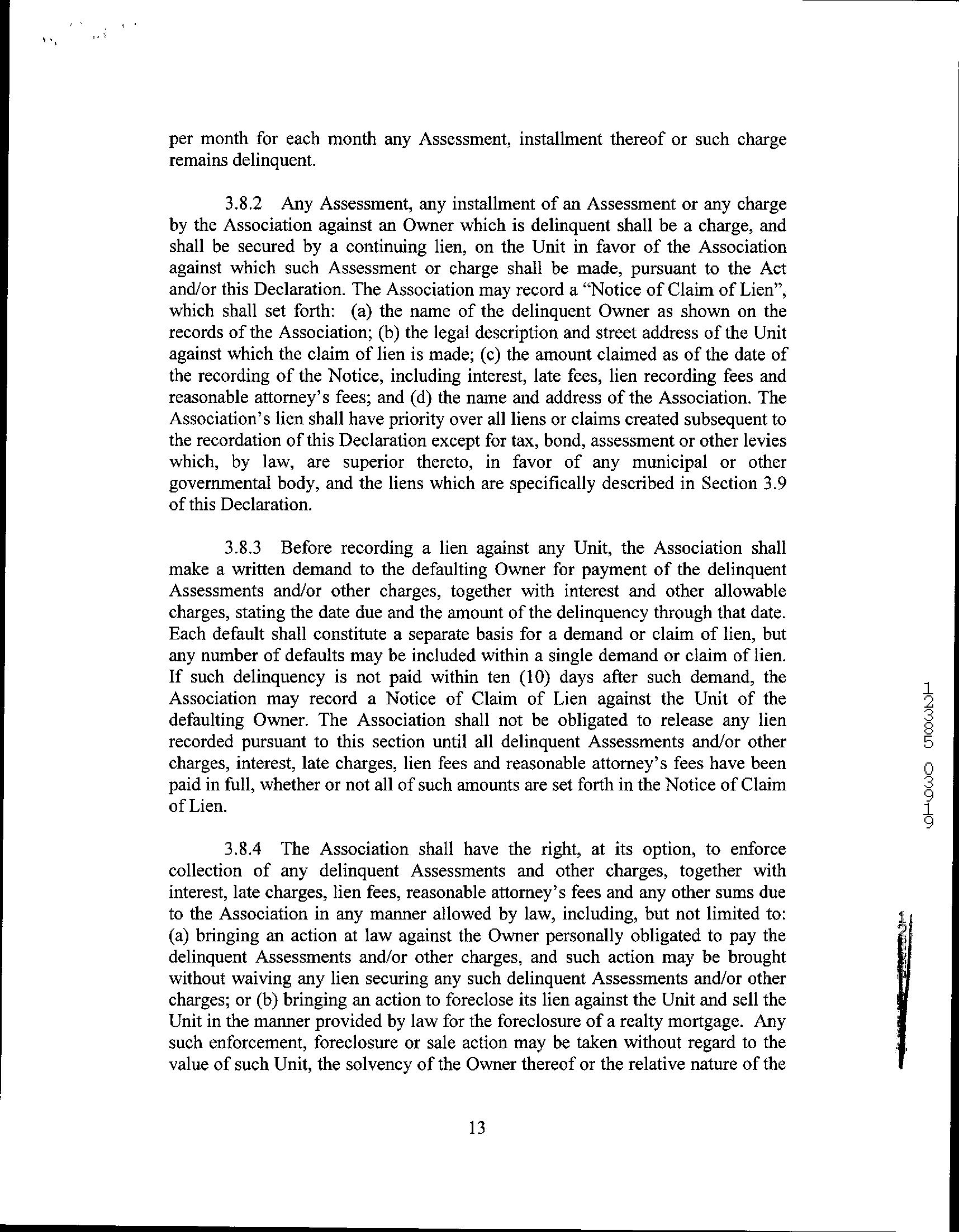 11 Unrecorded lien by a homeowners association